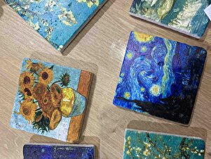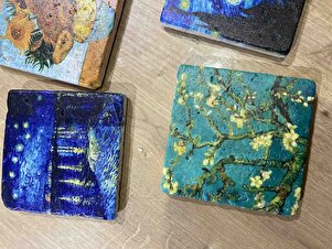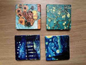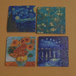 Doğal Taş Bardak Altlığı Vincent Van Gogh Eserleri Baskılı 4'lü Set - Stone Coasters Doğal Taş Bardak Altlığı Vincent Van Gogh Eserleri Baskılı 4'lü Set - Stone Coasters bardakaltı252 تک سایز