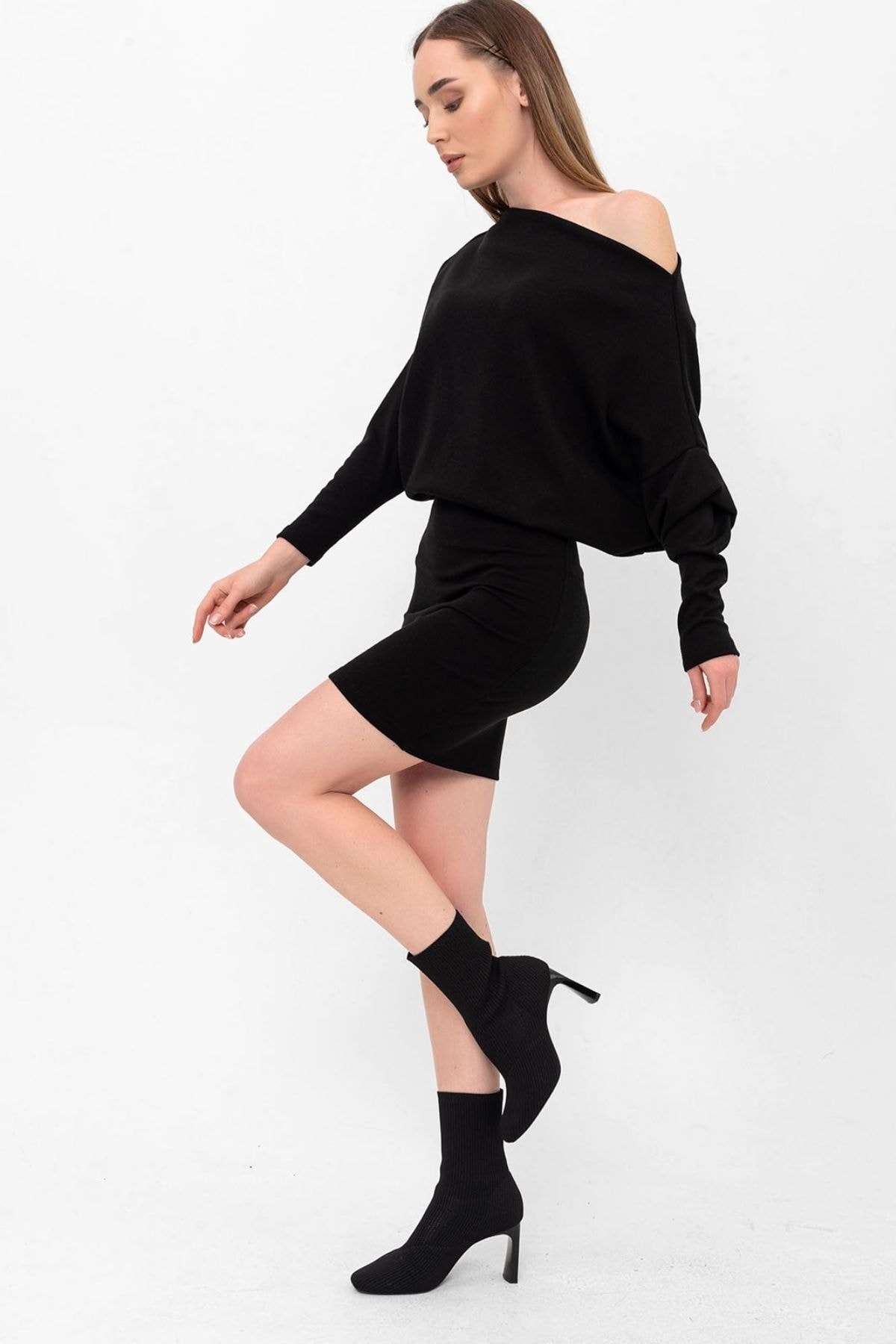 Siyah Kayık Yaka Uzun Kol Triko Elbise Siyah Kayık Yaka Uzun Kol Triko Elbise 22L7361 48