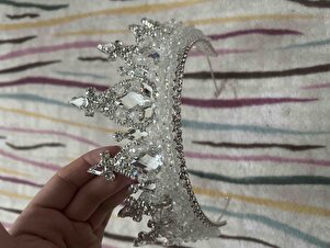 6,5 Cm Yüksekliğinde Kristal Boncuk Işlemeli Prenses Gelin Tacı 6,5 Cm Yüksekliğinde Kristal Boncuk Işlemeli Prenses Gelin Tacı sheka01 تک سایز