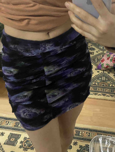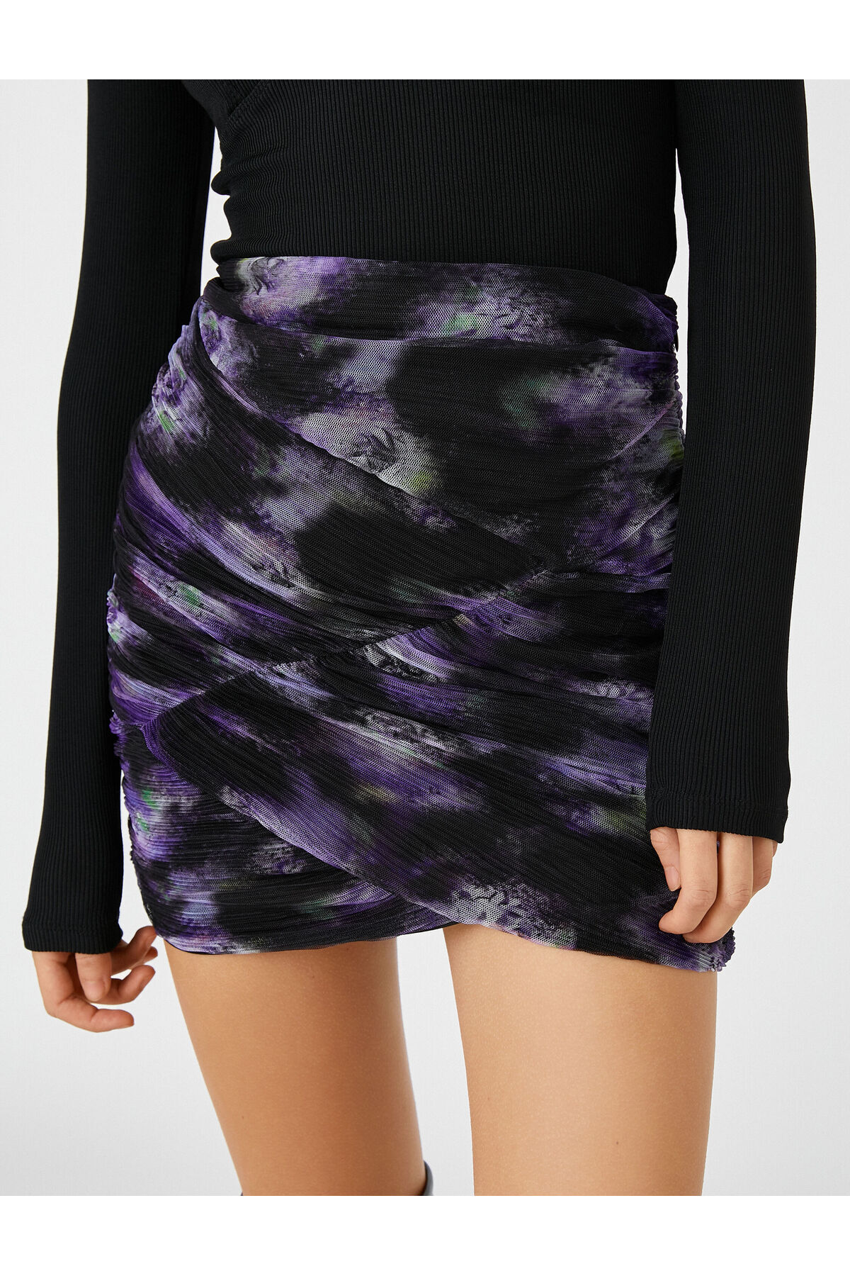 Mini Etek Büzgülü Desenli Mini Etek Büzgülü Desenli 3WAL70028IK XL