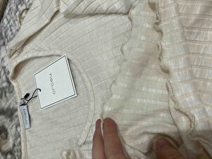 Ekru Flamlı Kaşkorse Yuvarlak Yaka Uzun Kol Body Ekru Flamlı Kaşkorse Yuvarlak Yaka Uzun Kol Body ORCLBO XL