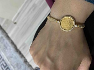 Gümüş Çeyrek Altın Konulan Çerçeveli Bileklik Gümüş Çeyrek Altın Konulan Çerçeveli Bileklik AEKRVXY3 تک سایز
