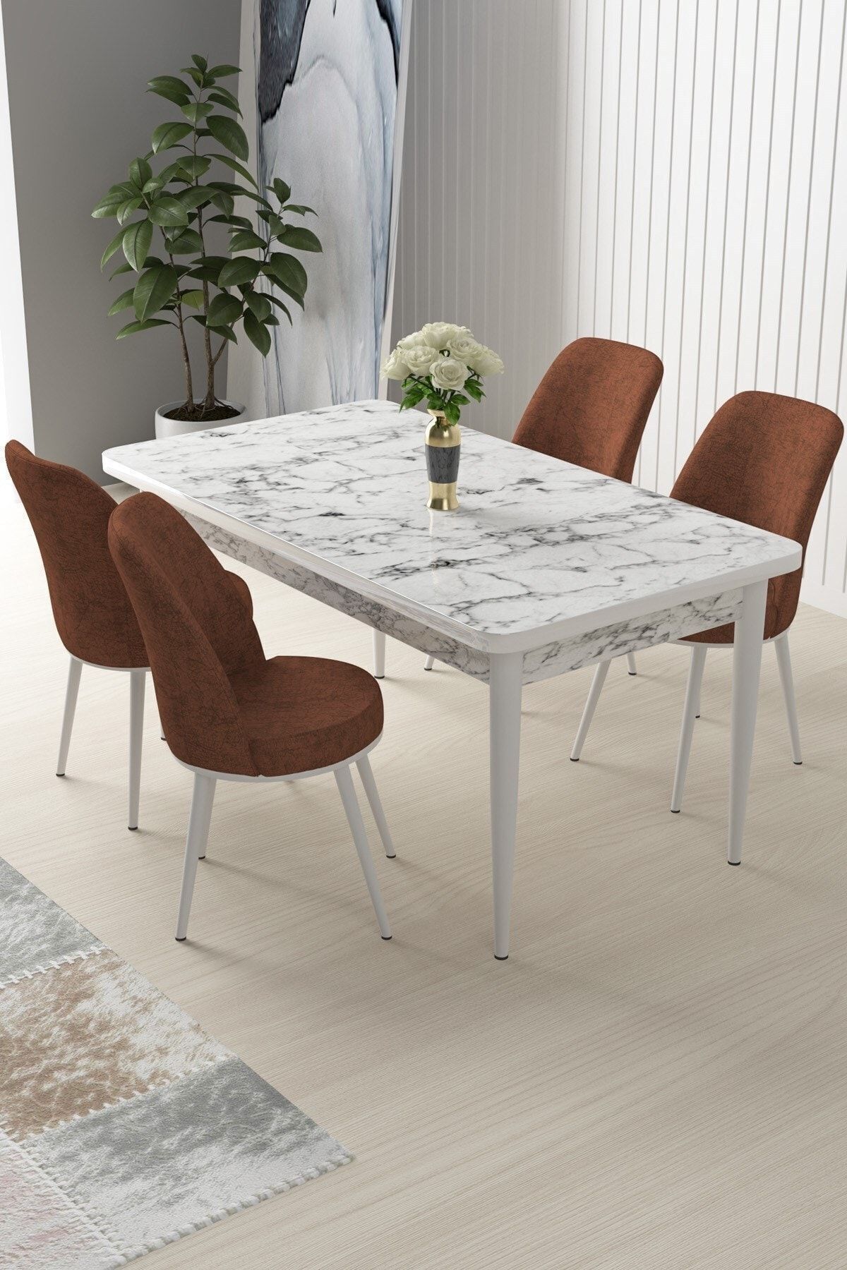 Nil Serisi 70x110 Sabit Mutfak Masası Takımı Beyaz Mermer Desen Masa 4 Cappucino Sandalye Nil Serisi 70x110 Sabit Mutfak Masası Takımı Beyaz Mermer Desen Masa 4 Cappucino Sandalye 23NIL1BYZMR4 تک سایز