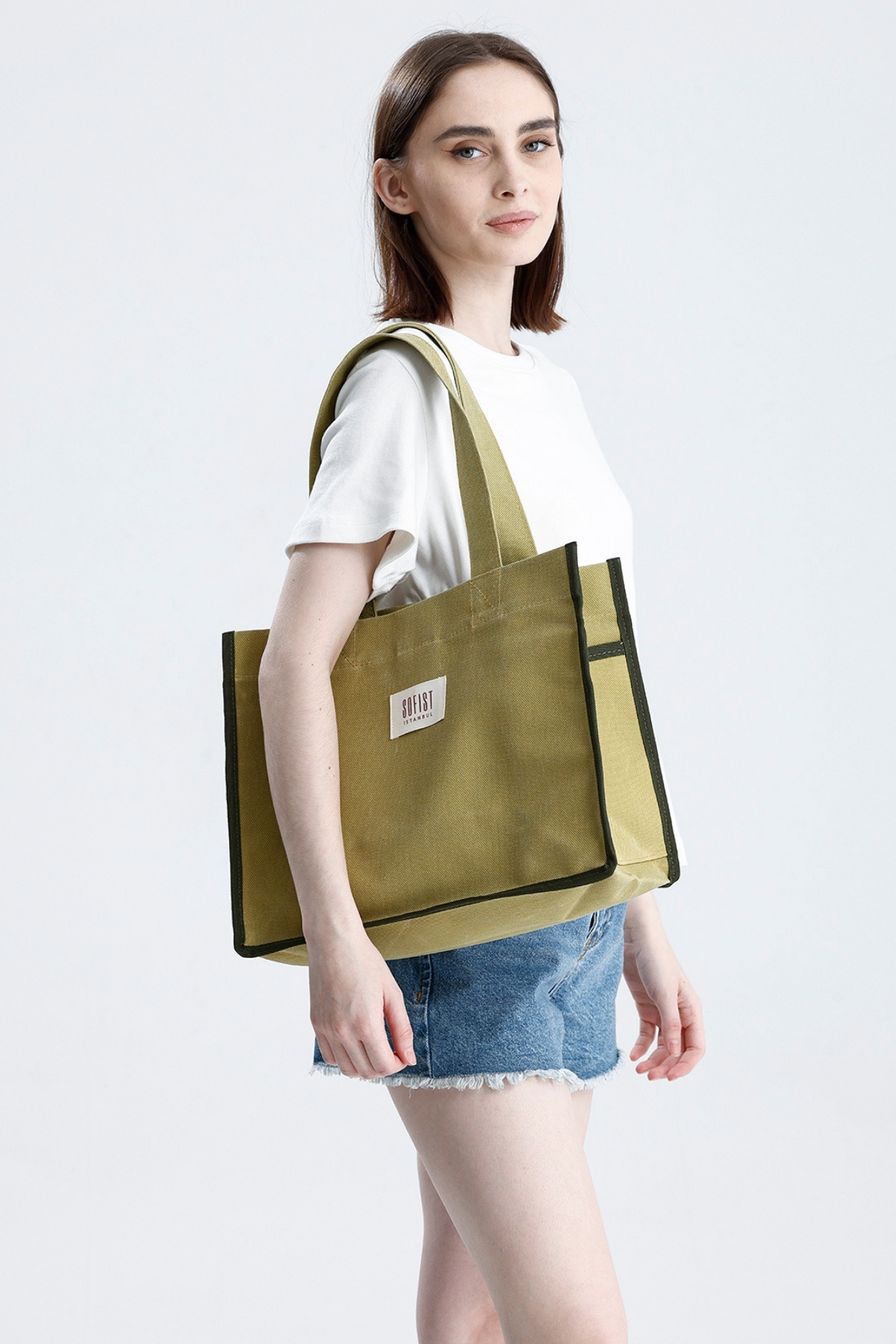 Fıstık Yeşili Moyen Waxed Canvas Tote Bag Mumlu Kanvas Kadın Omuz Çantası Fıstık Yeşili Moyen Waxed Canvas Tote Bag Mumlu Kanvas Kadın Omuz Çantası 3SFTWMO0 Orta Boy