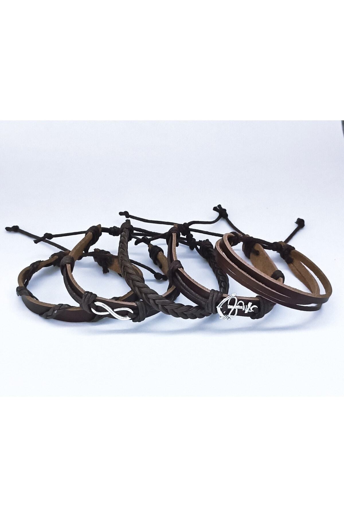 Sonsuzluk Çapa Figürlü Kahverengi Hakiki Deri Bileklik 5 Parça Sonsuzluk Çapa Figürlü Kahverengi Hakiki Deri Bileklik 5 Parça 00126 تک سایز