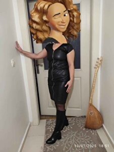 Ekolojik Suni Deri V Yaka Düşük Omuzlu Önü Fermuarlı Elbise -Siyah Ekolojik Suni Deri V Yaka Düşük Omuzlu Önü Fermuarlı Elbise -Siyah 50143 42