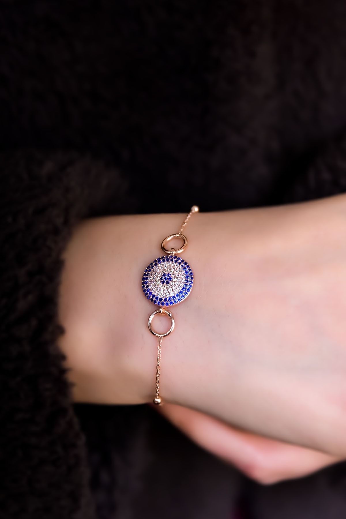 925 Ayar Gümüş Rose Kaplama Top Zincirli, Zirkon Taşlı Halkalı Nazar Bileklik 925 Ayar Gümüş Rose Kaplama Top Zincirli, Zirkon Taşlı Halkalı Nazar Bileklik UVPTS200142 تک سایز