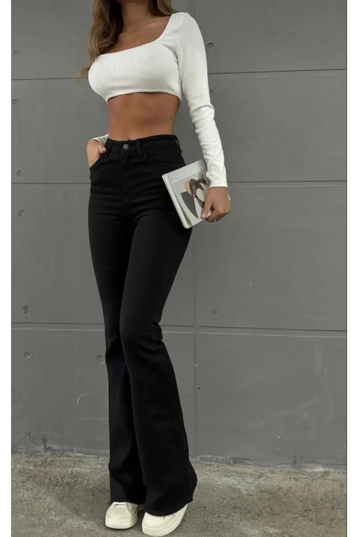 Ispanyol Paça Jeans Solmaz Koyu Mavi Ispanyol Jeans Yüksek Bel Kot Pantolon Ispanyol Paça Jeans Solmaz Koyu Mavi Ispanyol Jeans Yüksek Bel Kot Pantolon ispanaseri002 36