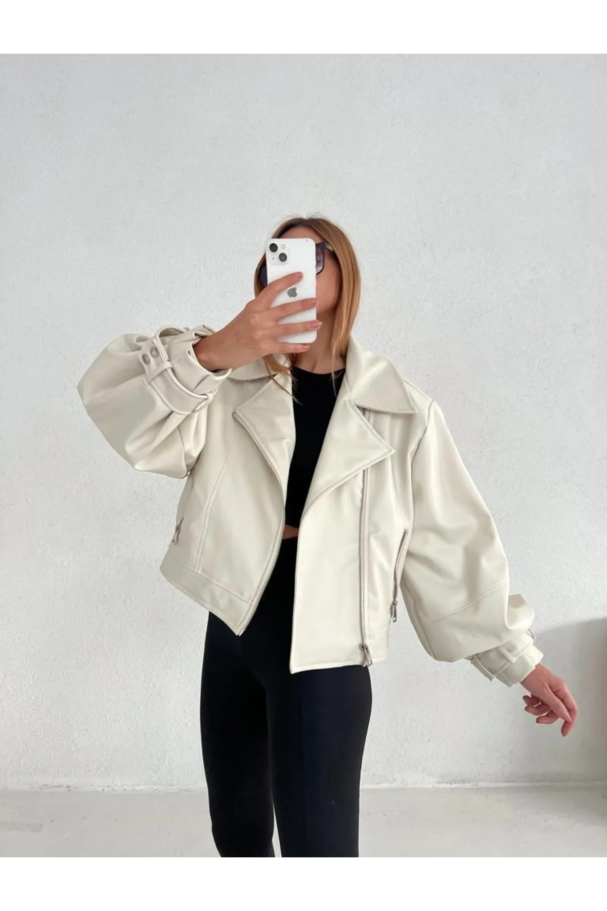 Suni Deri Geniş Kollu Bomber Ceket Suni Deri Geniş Kollu Bomber Ceket TS01 L