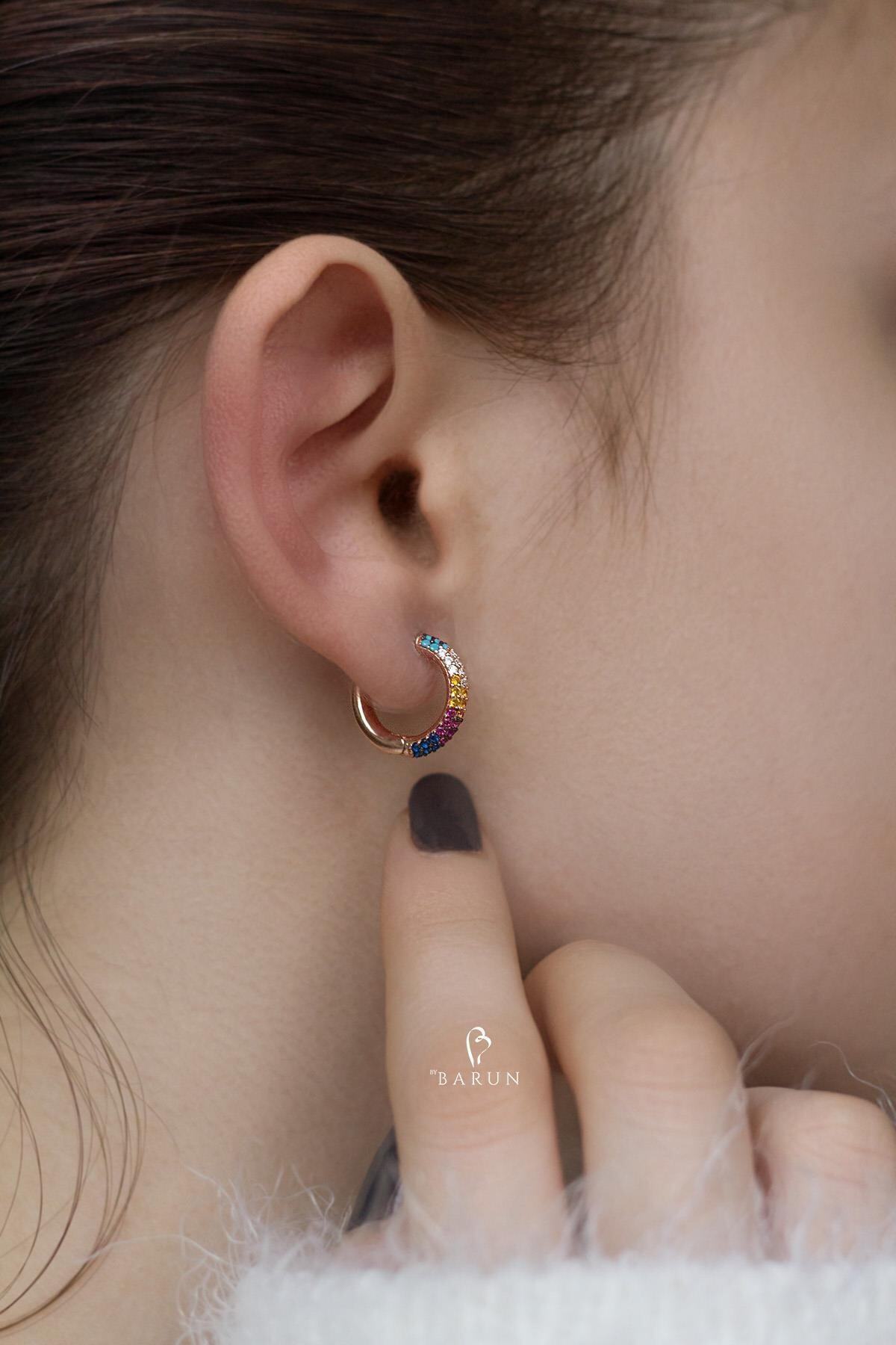 Halka Küpe Sallantılı 925 Ayar Siyah Yuvarlak Zirkon Taşlı Rose Pembe Geçmeli Gümüş Küpe Halka Küpe Sallantılı 925 Ayar Siyah Yuvarlak Zirkon Taşlı Rose Pembe Geçmeli Gümüş Küpe KP-0547 تک سایز