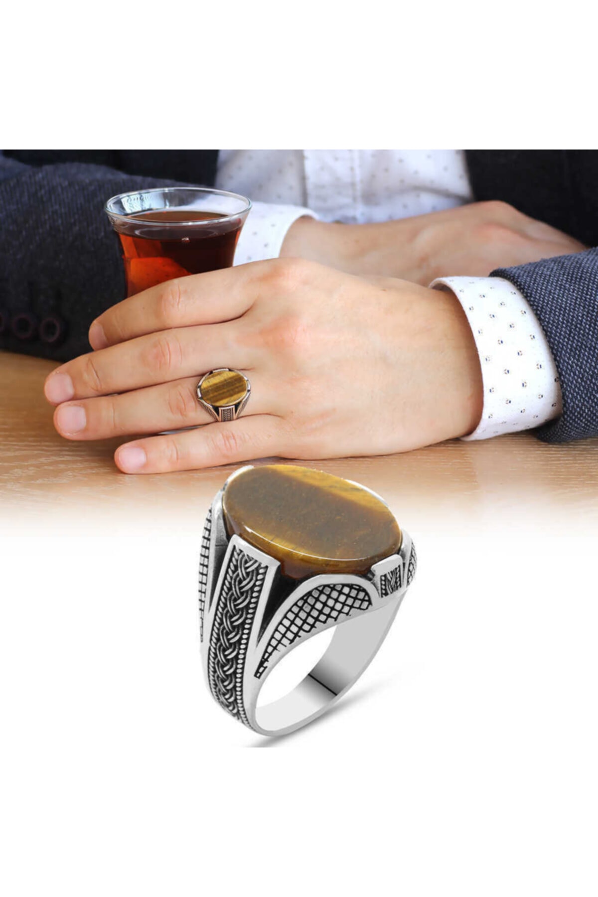 Kaplangözü Taşlı Kalem Işçilikli 925 Ayar Erkek Gümüş Yüzük Kaplangözü Taşlı Kalem Işçilikli 925 Ayar Erkek Gümüş Yüzük TEGY-123 33