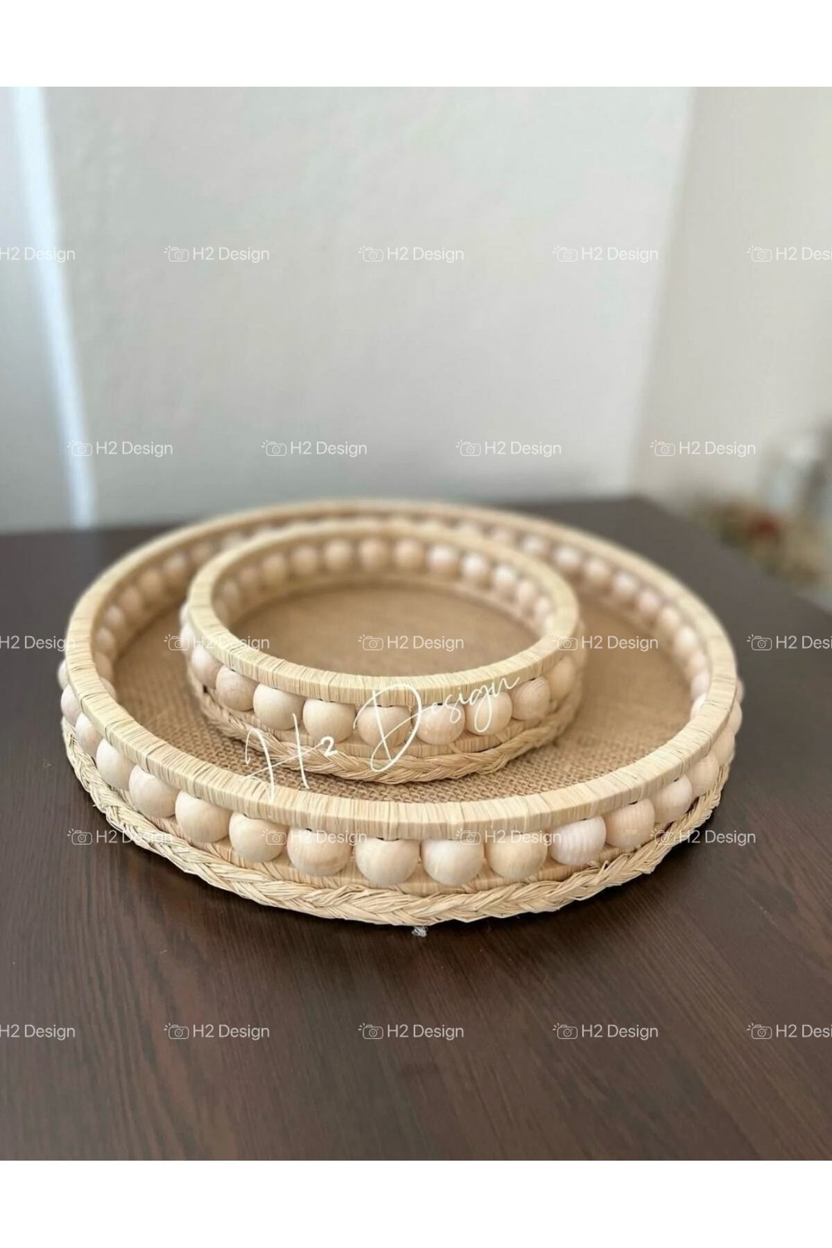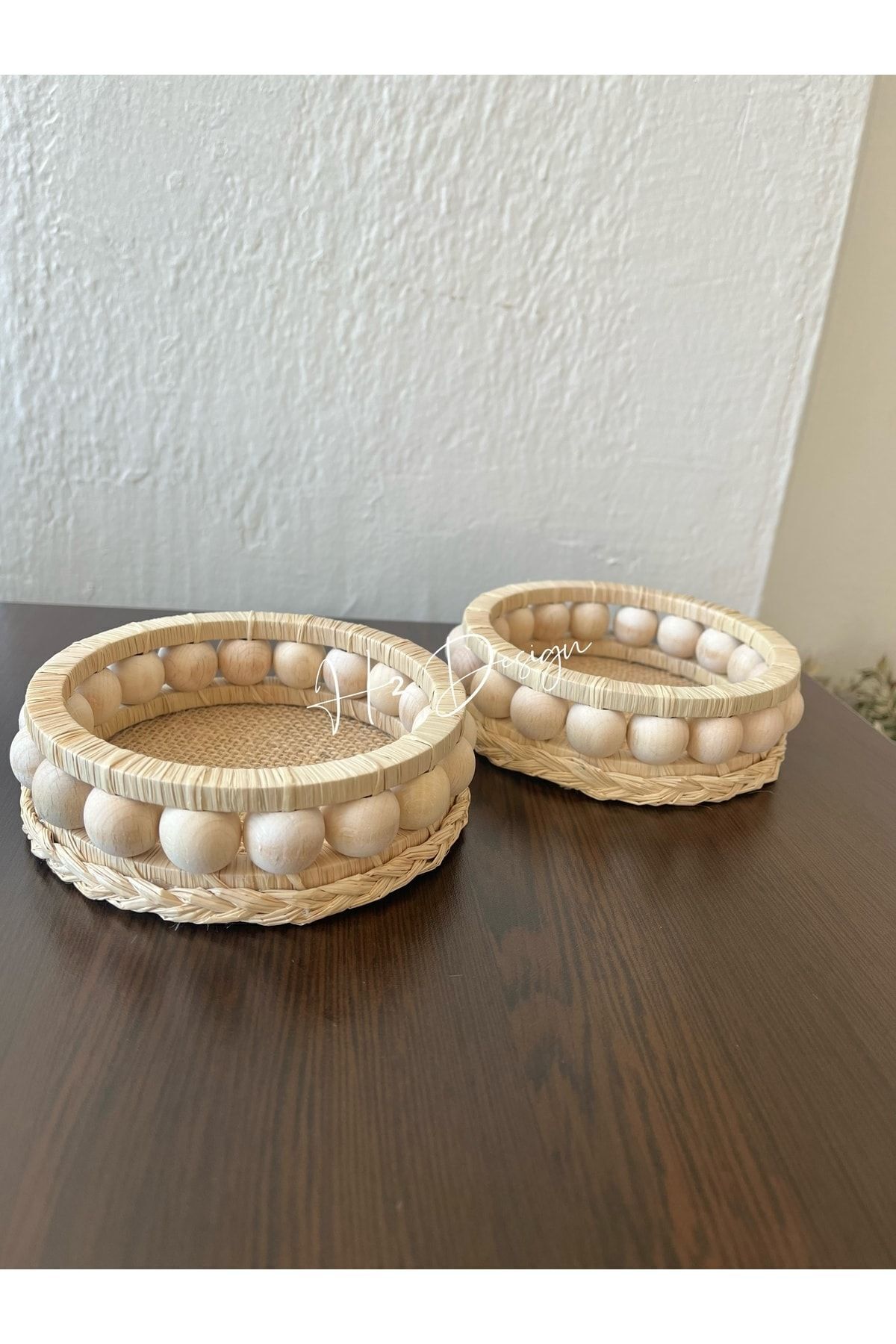 Ahşap Boncuklu El Yapımı Doğal Rafya Tepsi 19-20 Cm Ahşap Boncuklu El Yapımı Doğal Rafya Tepsi 19-20 Cm H2B0020 تک سایز