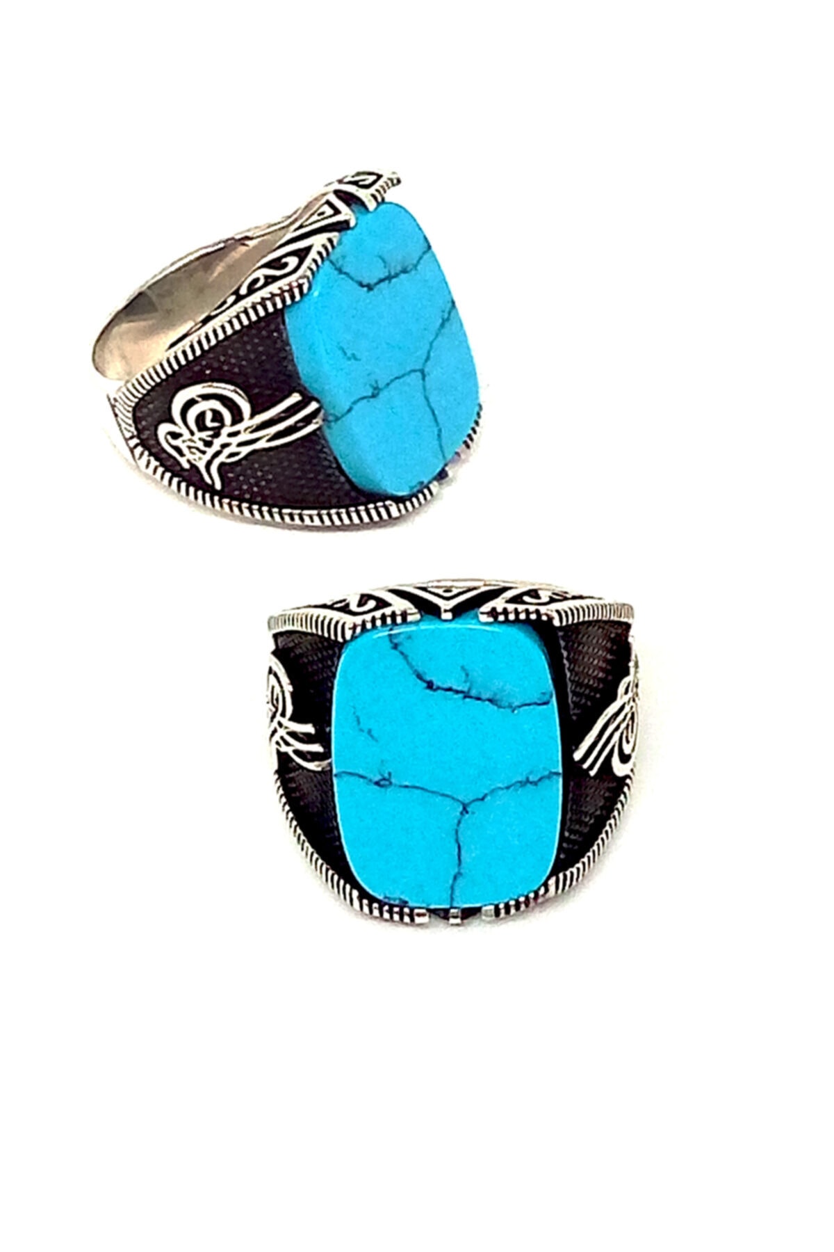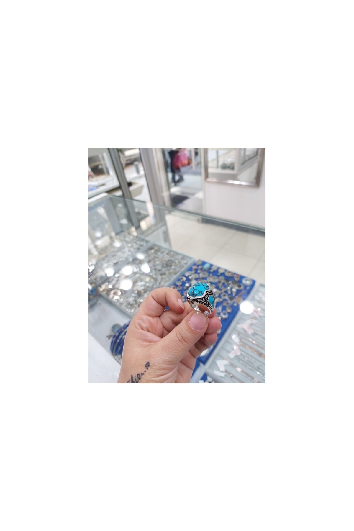 Firuze Taşlı Kalem Işçilikli 925 Ayar Gümüş Yüzük Firuze Taşlı Kalem Işçilikli 925 Ayar Gümüş Yüzük TEGY-111 33