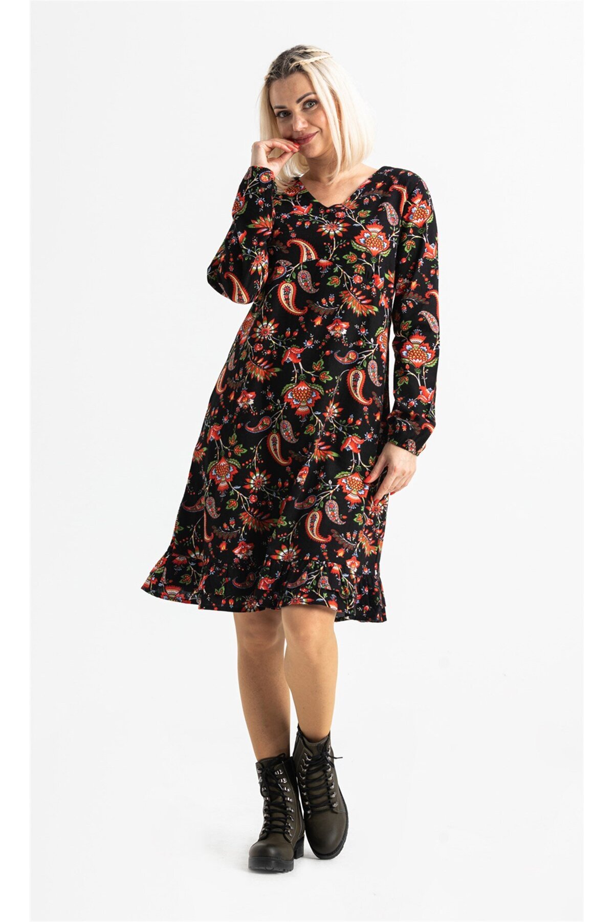 Uzun Kol Velvetin Bade Desenli Kısa Sonbahar ve Kışlık Elbise Siyah Syh Uzun Kol Velvetin Bade Desenli Kısa Sonbahar ve Kışlık Elbise Siyah Syh 822.60 3XL