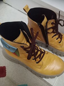 *Botum* gerçekten muhteşem 🍓🍇🍎🍒🍐O kadar beğendim ki, tasarımını yapsam anca olurdu. Ayrıca derisi, dikiş ve kalıbı da çok güzel ve KALİTELİ. 24cm ayak tabanım, 38 aldım, tam oldu, ve müthiş rahat. Kesinlikle öneriyorum.. ya da almayın az kişide olsun😉😂Derisi de öyle.. Bir şey belirtmek isterim; o da fotoğraf takı renkler daha parlak, ve açık bir sarı vb, taban daki malzeme de_neredeyse vazgeçecektim_gri idi. Oysa ürünün sarısı hardal sarısı, ki bunu görmüştüm, taban rengi ise açık vizon. Uyum çok daha iyi elbette. Bir kadın üretici olarak sizi tebrik ediyorum. İmkanım olduğunda bir ürün daha almak isterim. Teşekkürler🙏 ☺😍🥰