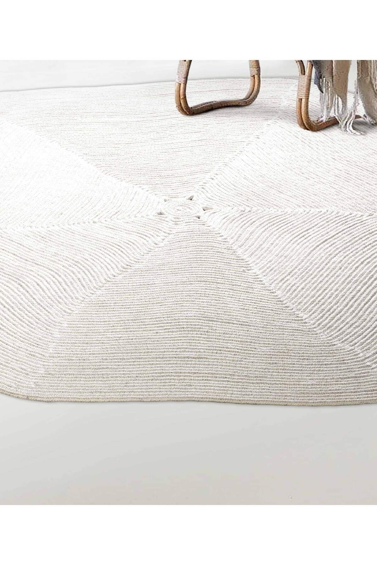 Boulder El Örmesi Altıgen Beyaz Pamuklu Yıkanabilir Halı Kilim Balkon Teras Salon Koridor Halısı Has Boulder El Örmesi Altıgen Beyaz Pamuklu Yıkanabilir Halı Kilim Balkon Teras Salon Koridor Halısı Has KH-69591 200 x 200