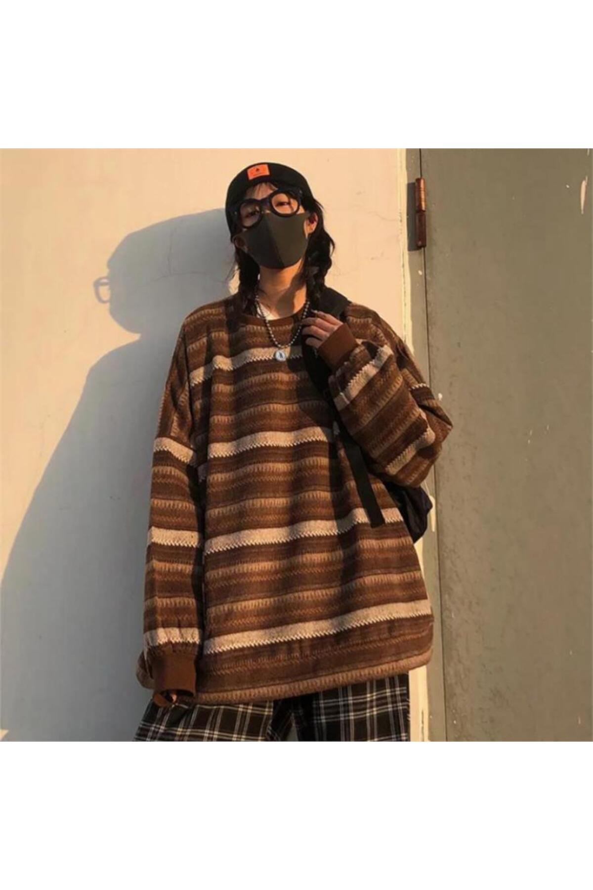 Yeşil-siyah Çizgili Streetwear Oversize Standart Beden Kazak Yeşil-siyah Çizgili Streetwear Oversize Standart Beden Kazak TYC00598282551 Standart