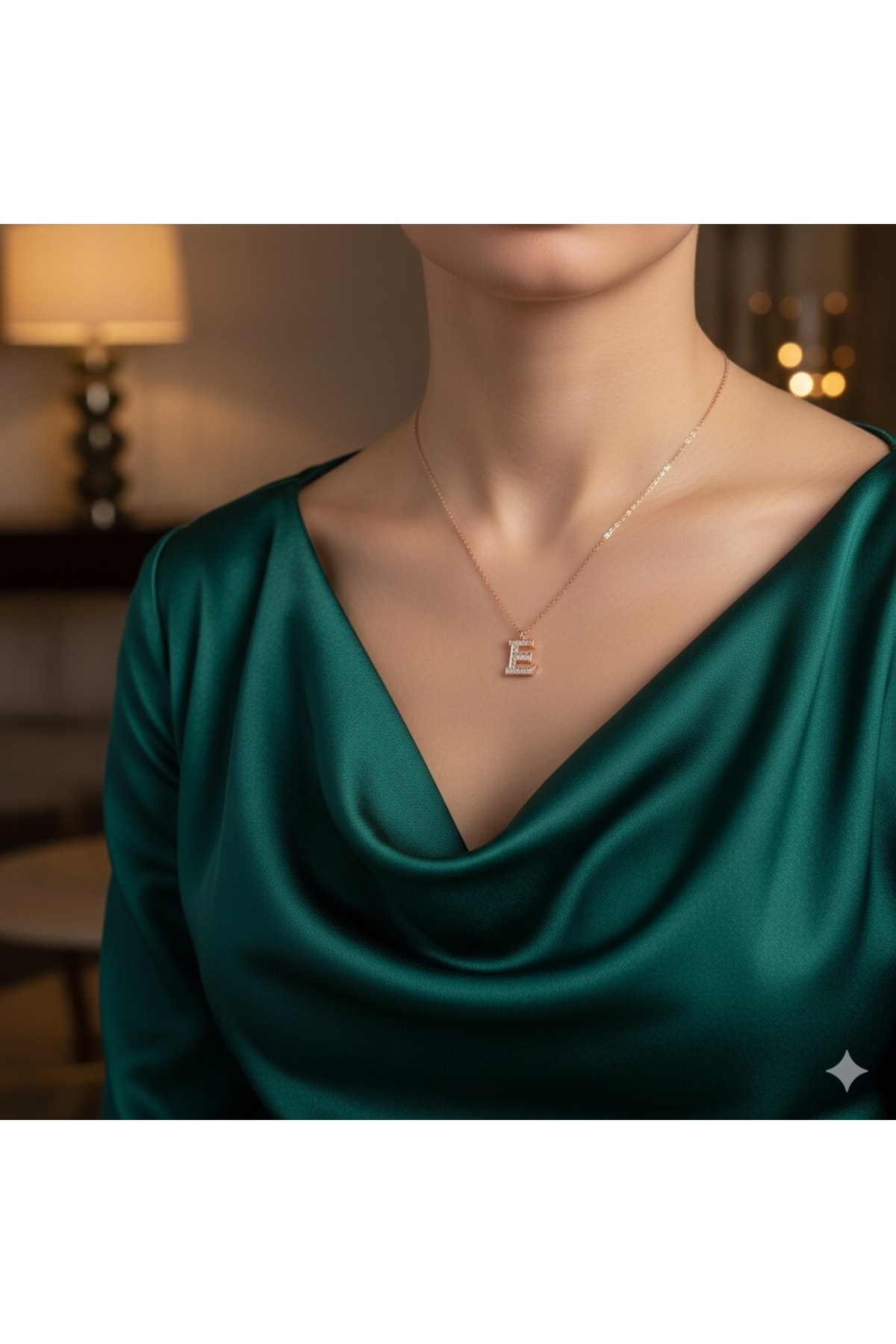 Taşlı E Harfi 925 Ayar Gümüş Kolye Taşlı E Harfi 925 Ayar Gümüş Kolye KLLB000316 45 cm