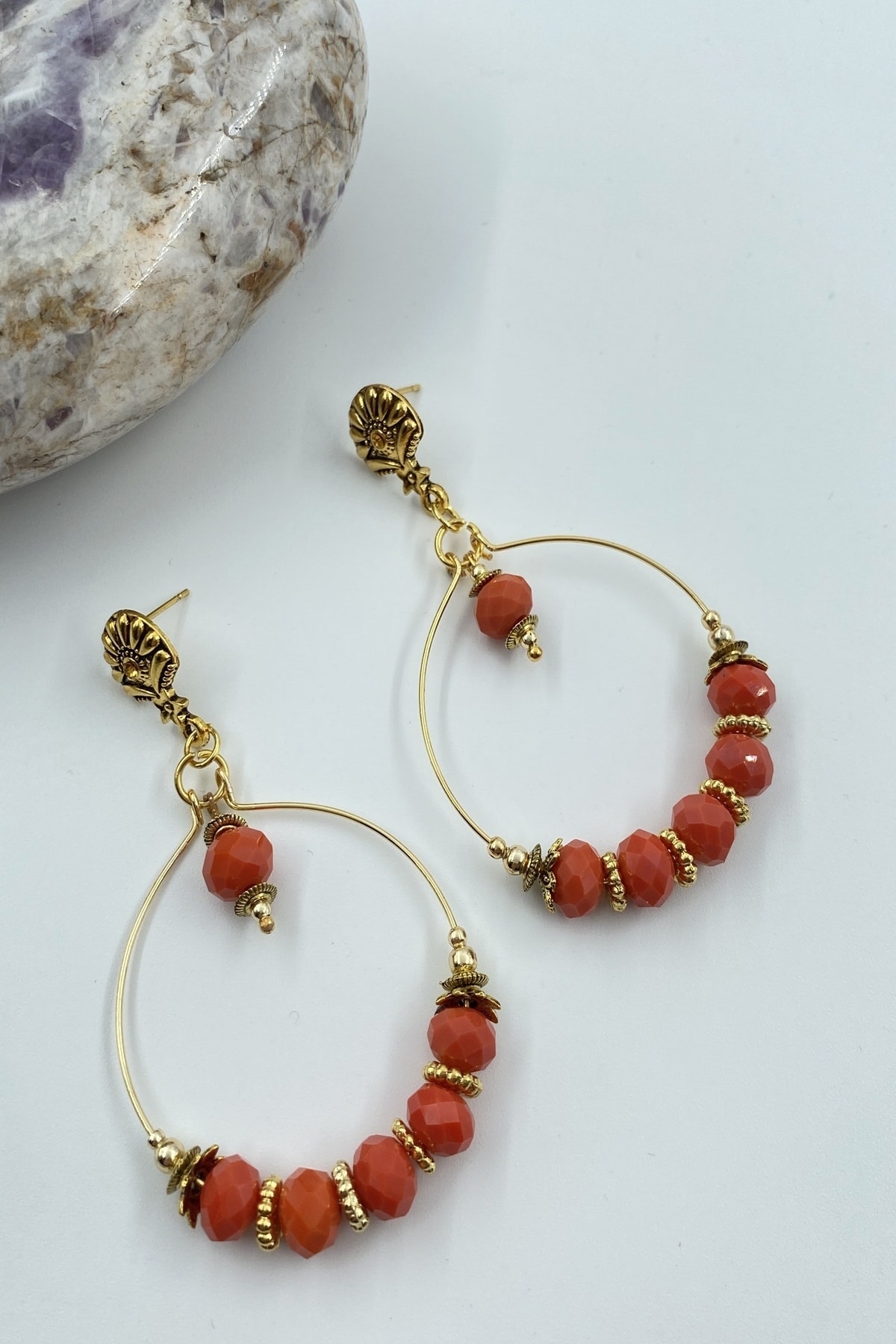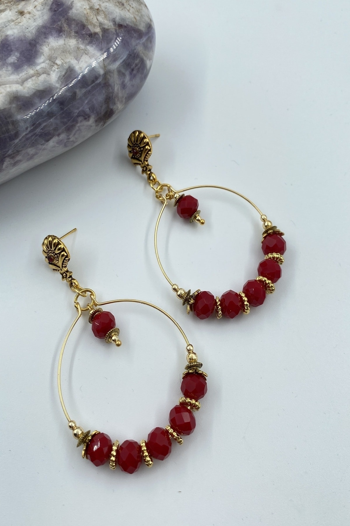 El Yapımı Kristal Boncuk Halka Küpe El Yapımı Kristal Boncuk Halka Küpe CCP1248 تک سایز