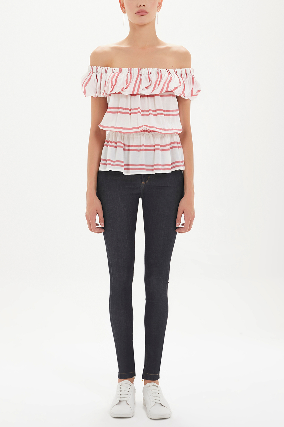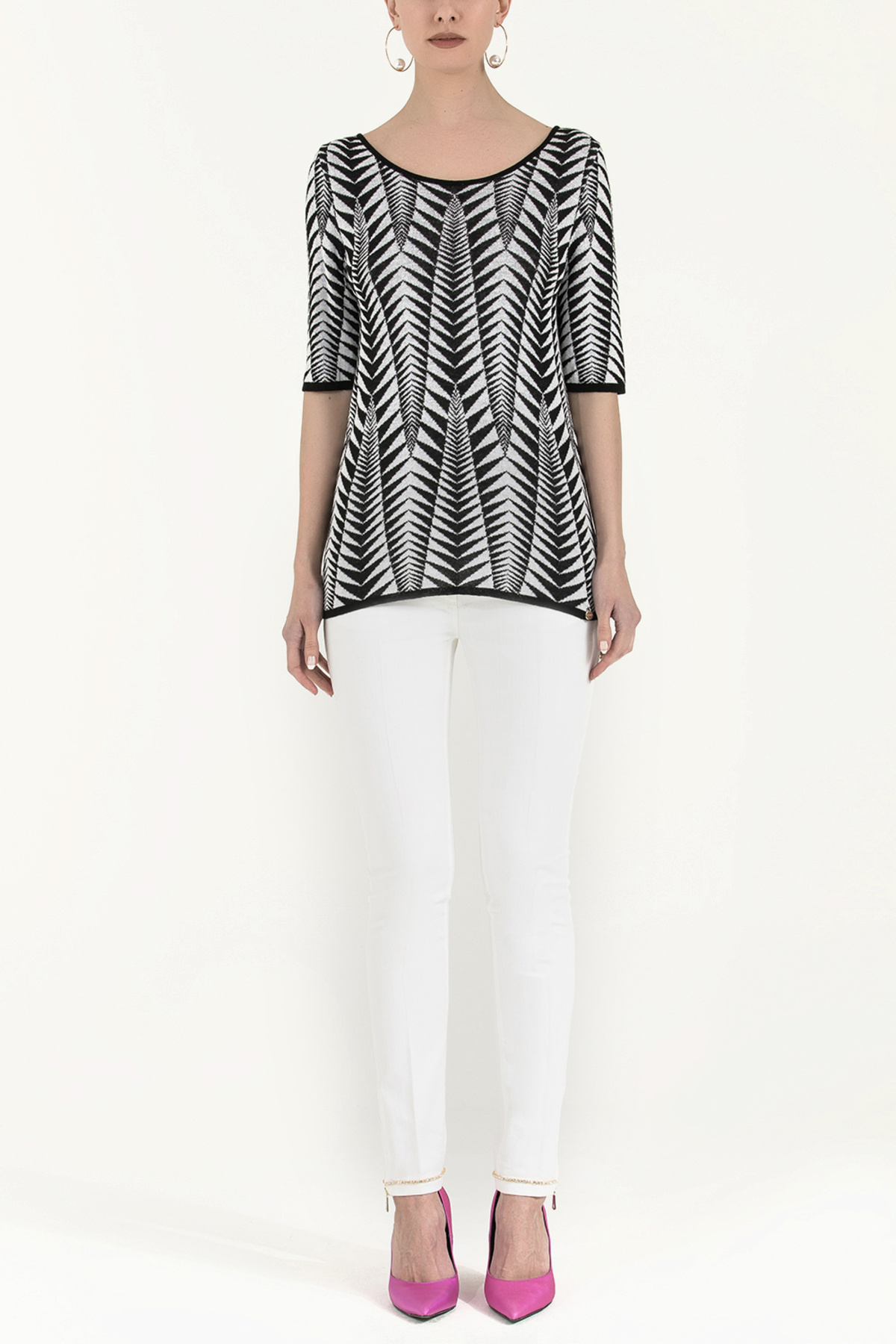 Beyaz Siyah Kolları büzgülü bluz 19833 Beyaz Siyah Kolları büzgülü bluz 19833 M18211019833163 L