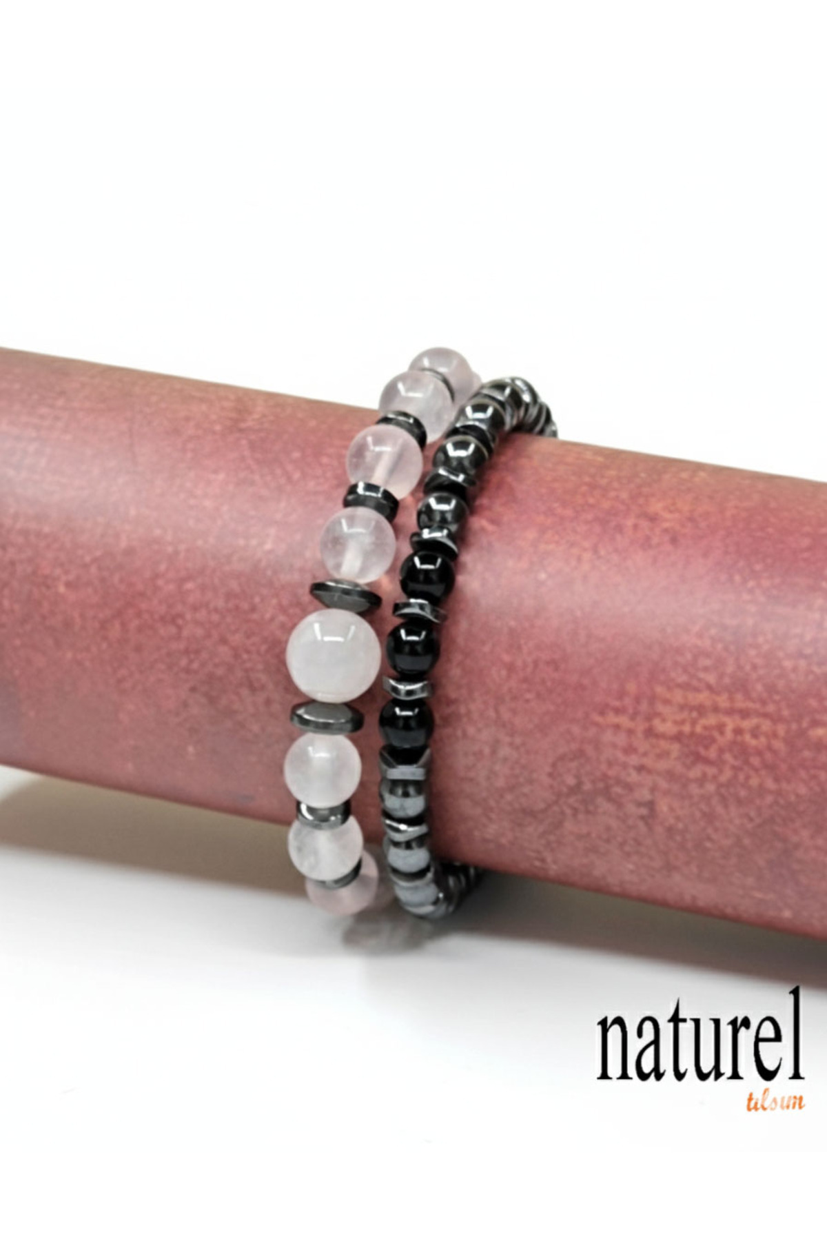 Pembe Kuvars-hematit-oniks Doğal Taş Unisex Kombin Bileklik Pembe Kuvars-hematit-oniks Doğal Taş Unisex Kombin Bileklik NTKOMBİNT1 19 cm