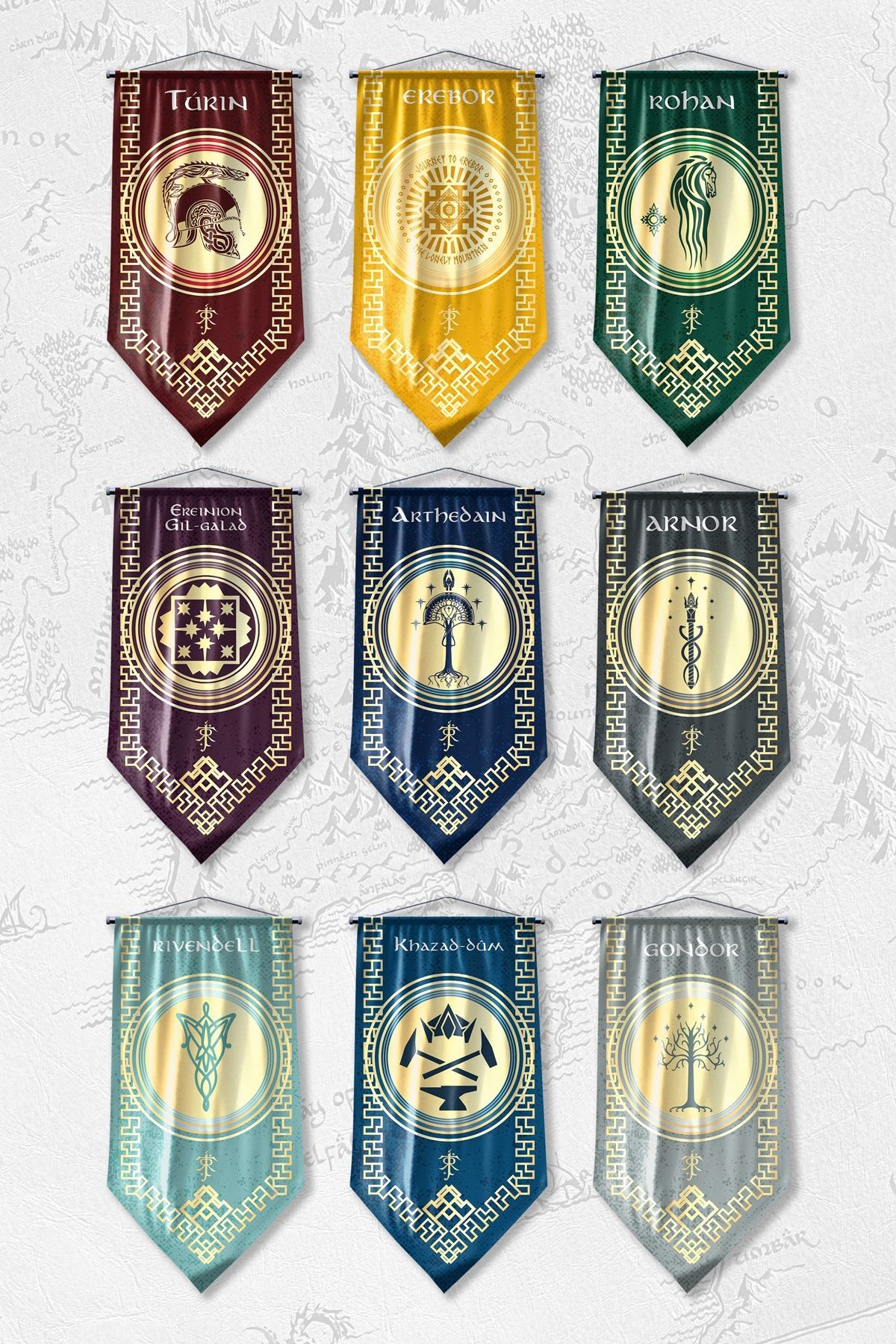 Yüzüklerin Efendisi Güç Yüzükleri Krallıkları 5 Adet Flama Bayrak Seti 50x100 Yüzüklerin Efendisi Güç Yüzükleri Krallıkları 5 Adet Flama Bayrak Seti 50x100 TOLKIEN-FLAMA-SET-50x100 70 x 138