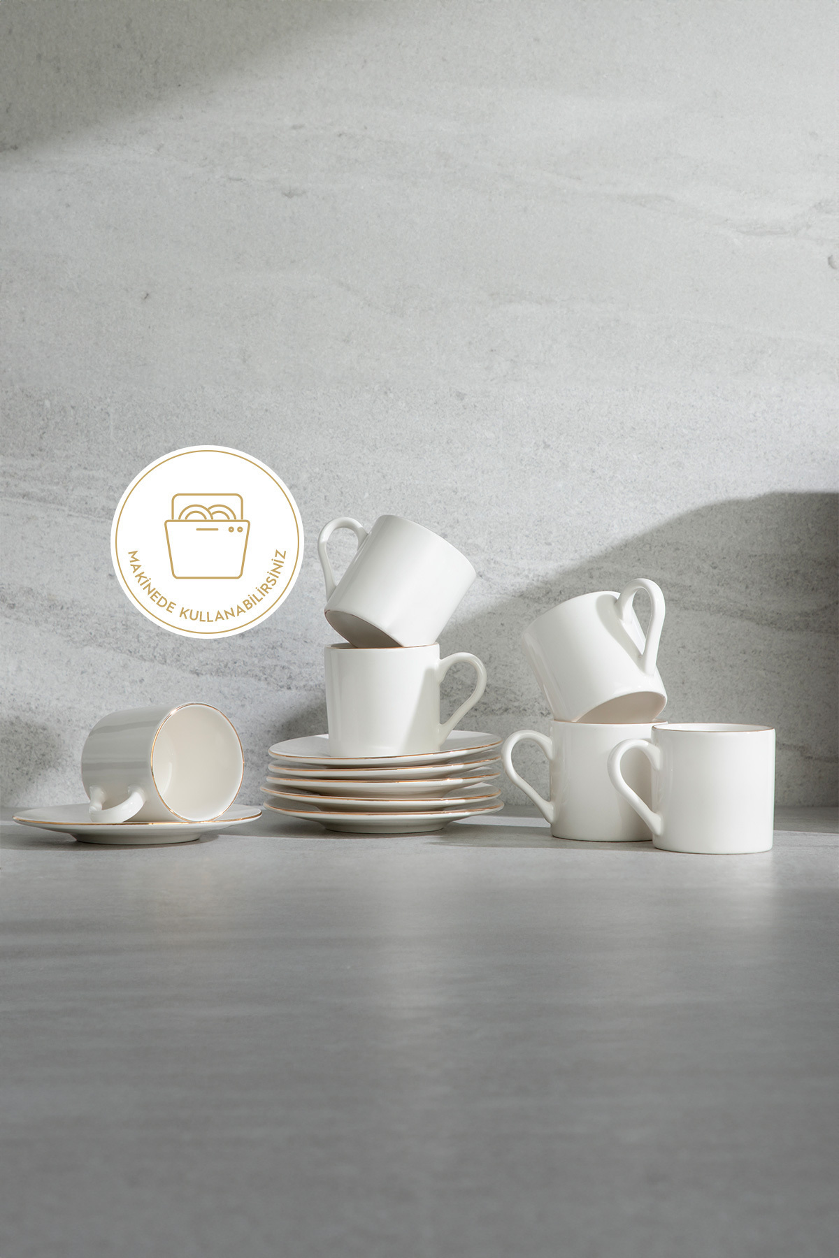 6 Kişilik Altın Yaldızlı Porselen Kahve Fincan Takımı - Beyaz 6 Kişilik Altın Yaldızlı Porselen Kahve Fincan Takımı - Beyaz PNK7347 تک سایز