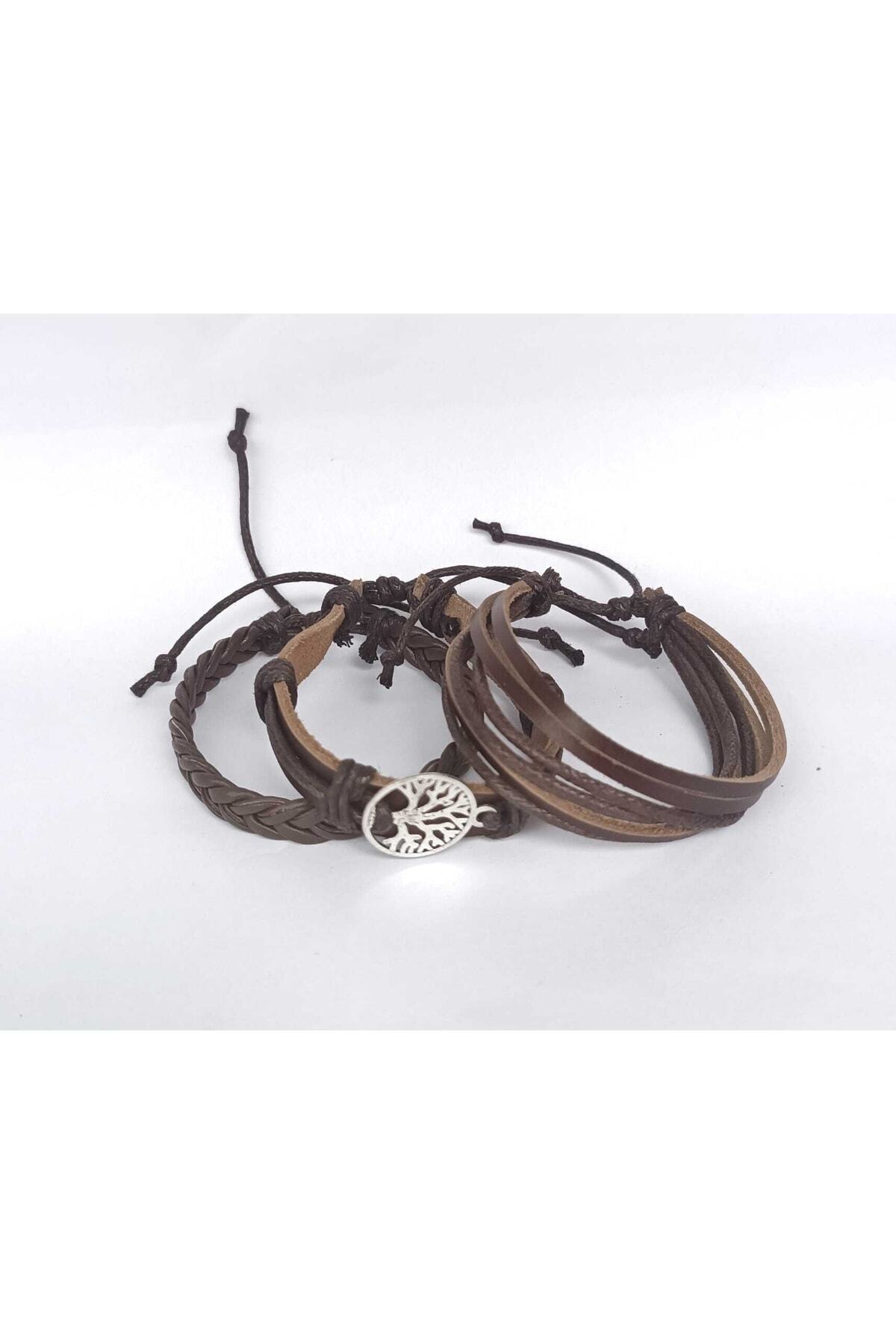 Kahverengi Hakiki Deri Bileklik 3'lü Yaşam Hayat Ağacı Figürlü El Yapımı Kahverengi Hakiki Deri Bileklik 3'lü Yaşam Hayat Ağacı Figürlü El Yapımı 00131 تک سایز