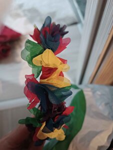 Bahar Renkleri Şifon Çiçekli Saten Taç Bahar Renkleri Şifon Çiçekli Saten Taç hy-07 تک سایز