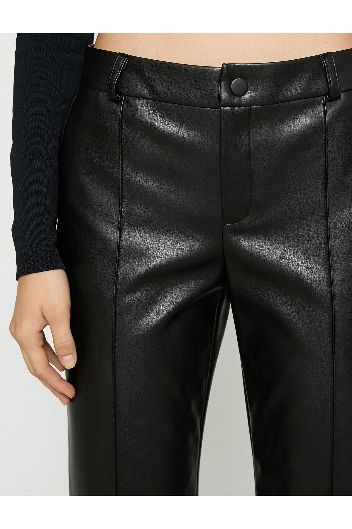 Nervürlü Deri Görünümlü Palazzo Pantolon Nervürlü Deri Görünümlü Palazzo Pantolon 3WAK40039EW 44
