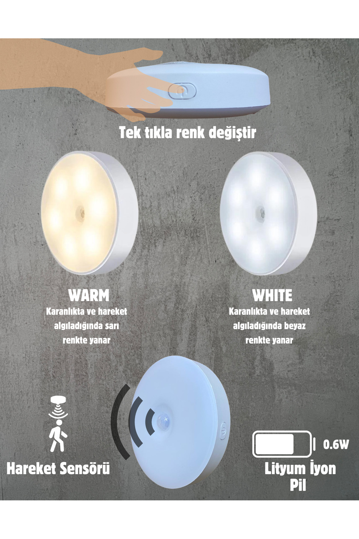 Hareket Sensörlü Usb Şarj Edilebilir Çift Renkli Led Işık Dolap Içi Gece Lambası Hareket Sensörlü Usb Şarj Edilebilir Çift Renkli Led Işık Dolap Içi Gece Lambası Beyaz-Sarı-Ayarlanabilir تک سایز