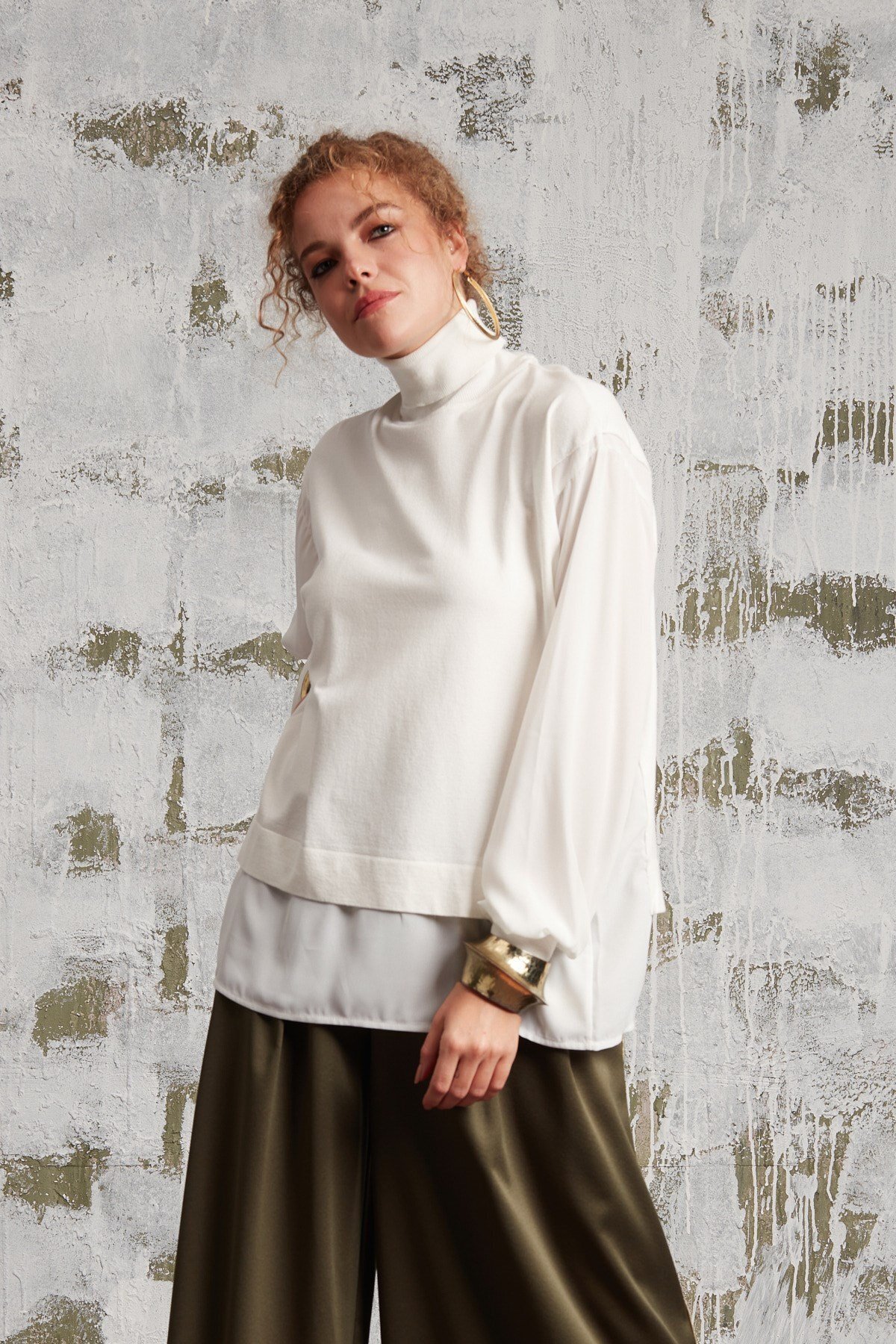 Krep Detaylı Bluz Kemik Krep Detaylı Bluz Kemik TYC00601117489 M
