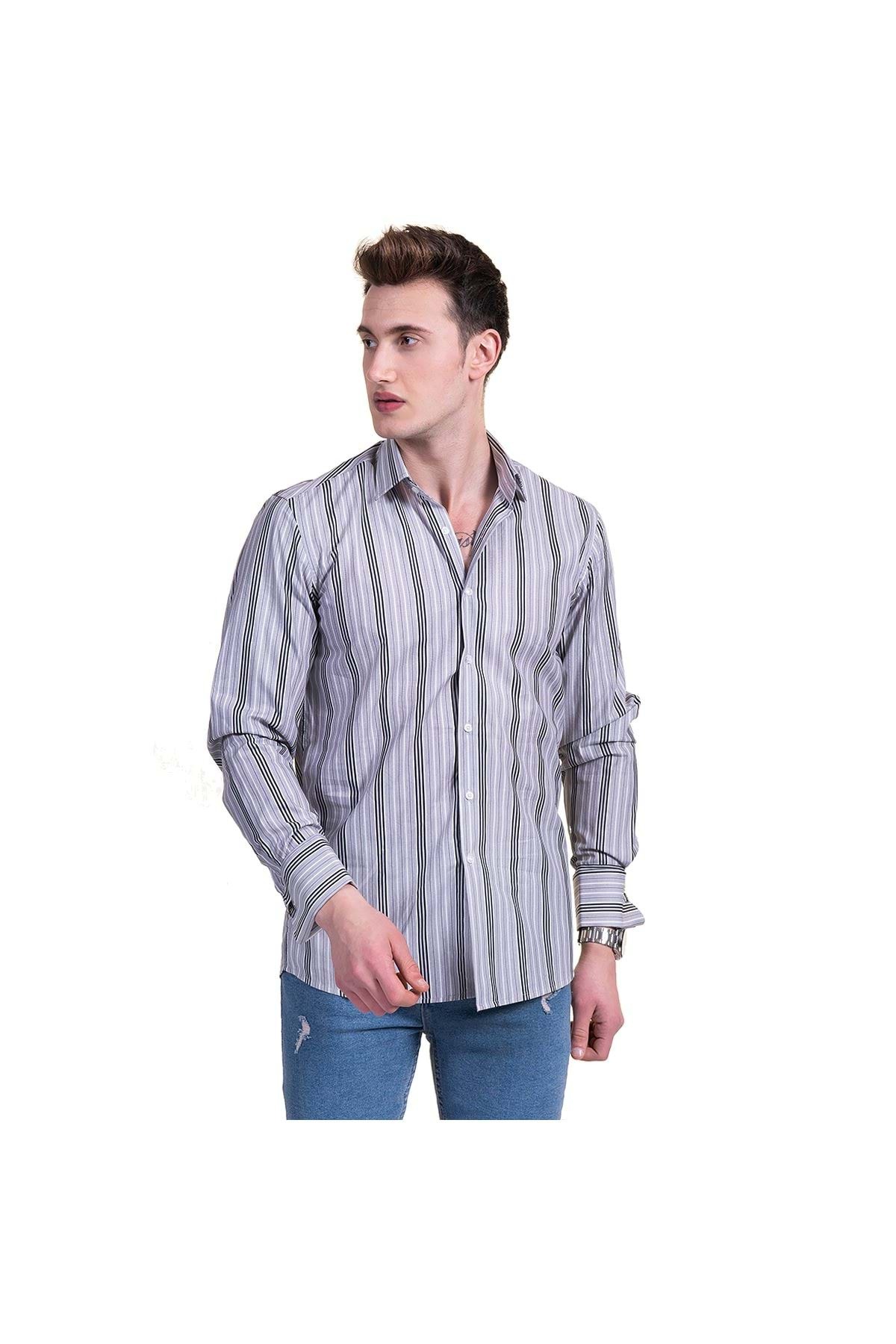 Gri Mavi Çizgili Duble Manşet Gömlek Kravat Kol Düğmesi Seti Gri Mavi Çizgili Duble Manşet Gömlek Kravat Kol Düğmesi Seti ST8294 S