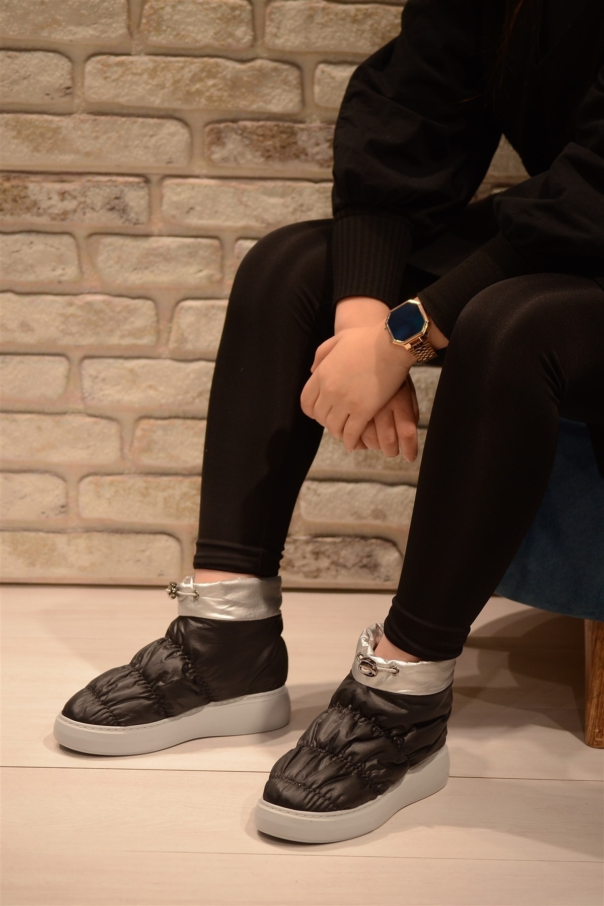 Kadın Siyah Şişme Paraşüt Kumaş Büzgülü Model Kısa Bot&bootie Kadın Siyah Şişme Paraşüt Kumaş Büzgülü Model Kısa Bot&bootie İSY1203 40