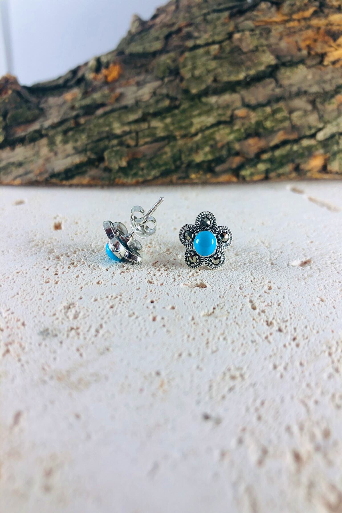 Firuze Taşlı Gümüş Bayan Küpe Firuze Taşlı Gümüş Bayan Küpe 21351 تک سایز