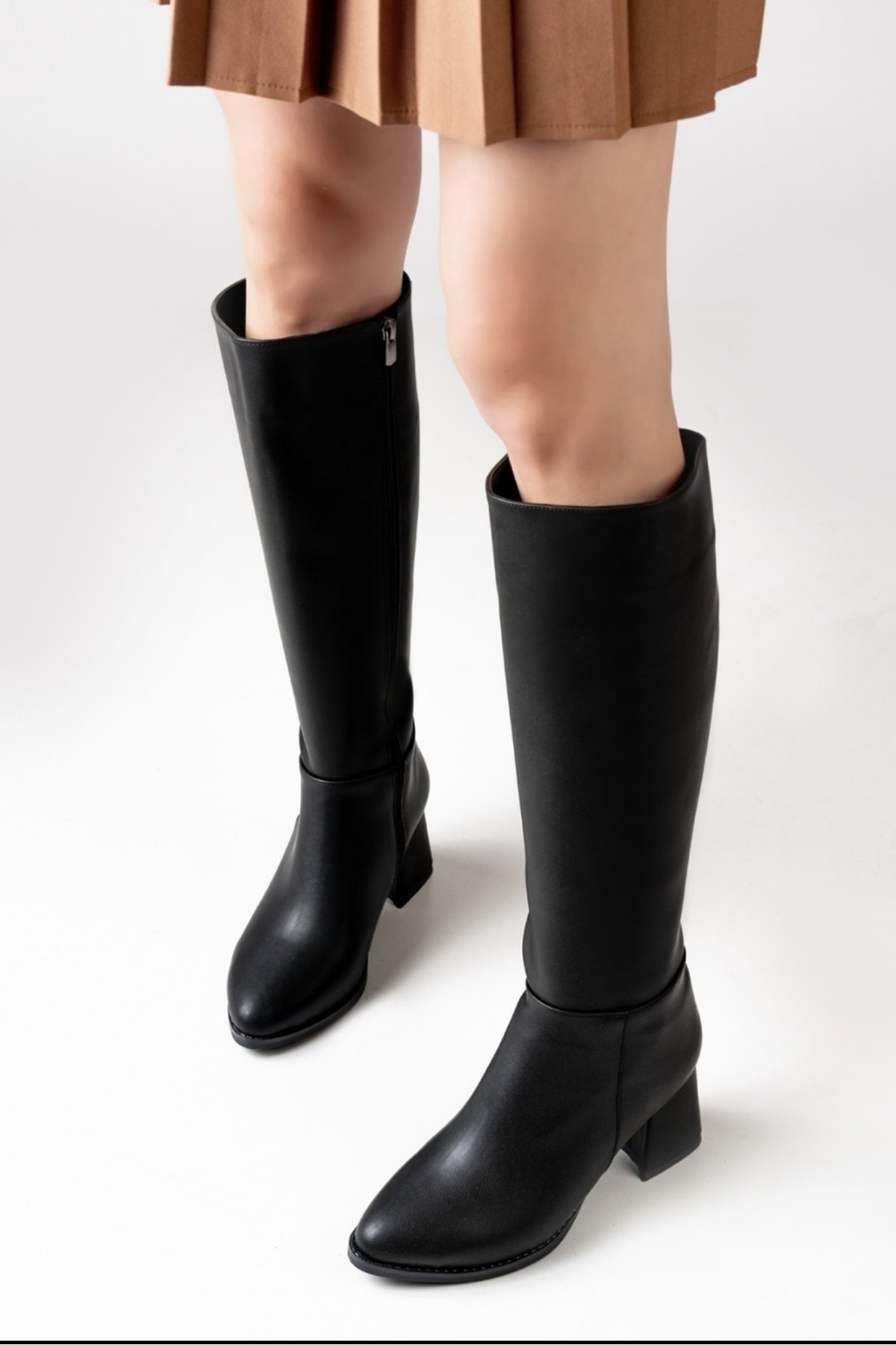 Siyah Deri Çizme Fermuarlı Kadın Çizme Uzun Tırtıklı Taban Sivri Burunlu Uzun Deri Çizme Siyah Deri Çizme Fermuarlı Kadın Çizme Uzun Tırtıklı Taban Sivri Burunlu Uzun Deri Çizme CBS00102 42
