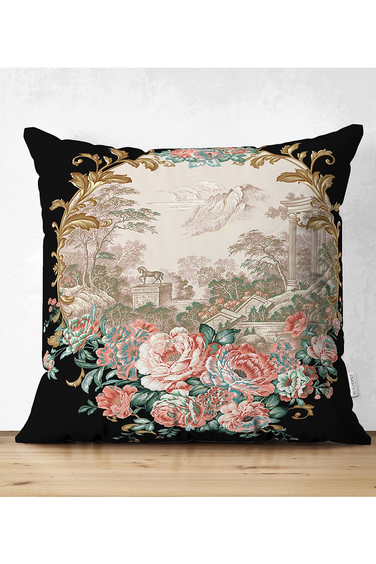 Gold Zeminde Çerçeveli Motifli Eskitme Desenli Dijital Baskılı Yastık Kırlent Kılıfı Gold Zeminde Çerçeveli Motifli Eskitme Desenli Dijital Baskılı Yastık Kırlent Kılıfı Rh-K11437 43 x 43