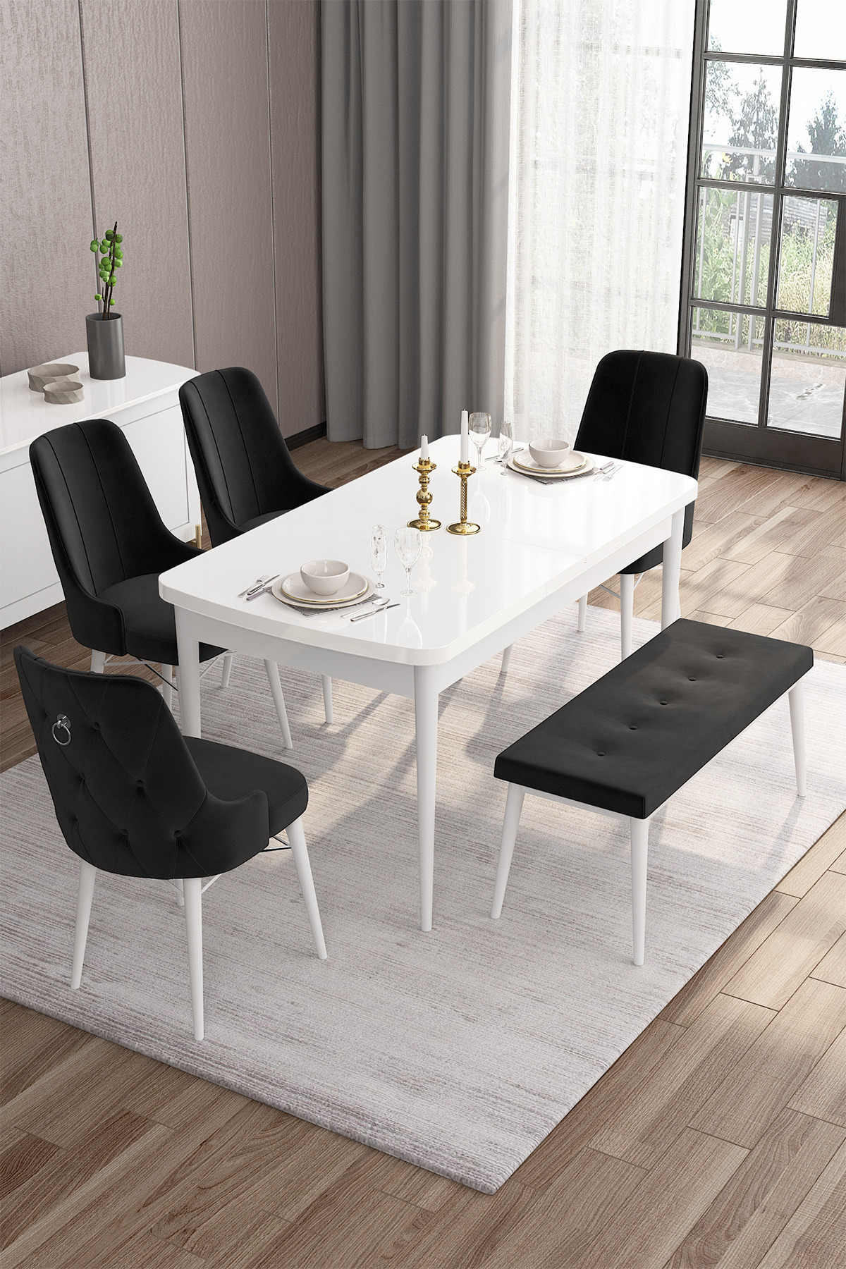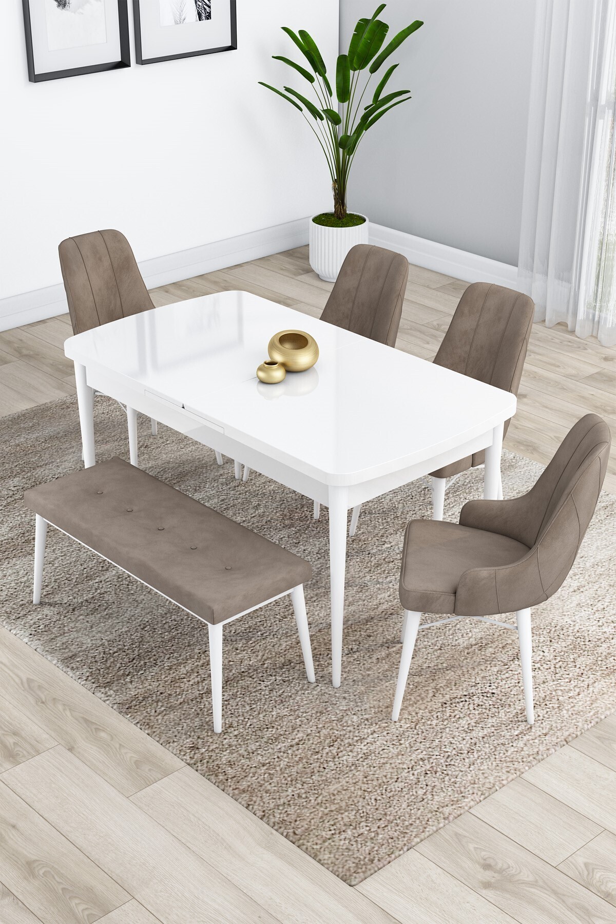 Are Serisi 80x132 Mdf Açılabilir Beyaz Masa Takımı 4 Gri Sandalye Ve 1 Bench Are Serisi 80x132 Mdf Açılabilir Beyaz Masa Takımı 4 Gri Sandalye Ve 1 Bench 24AREBYZ4GMS1BNC تک سایز
