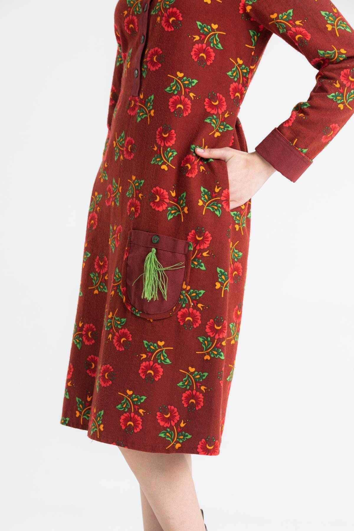 Uzun Kol Pazen Çiçek Desen Midi Boy Şirin Sonbahar ve Kışlık Elbise Bordo Brd Uzun Kol Pazen Çiçek Desen Midi Boy Şirin Sonbahar ve Kışlık Elbise Bordo Brd 822.61 3XL