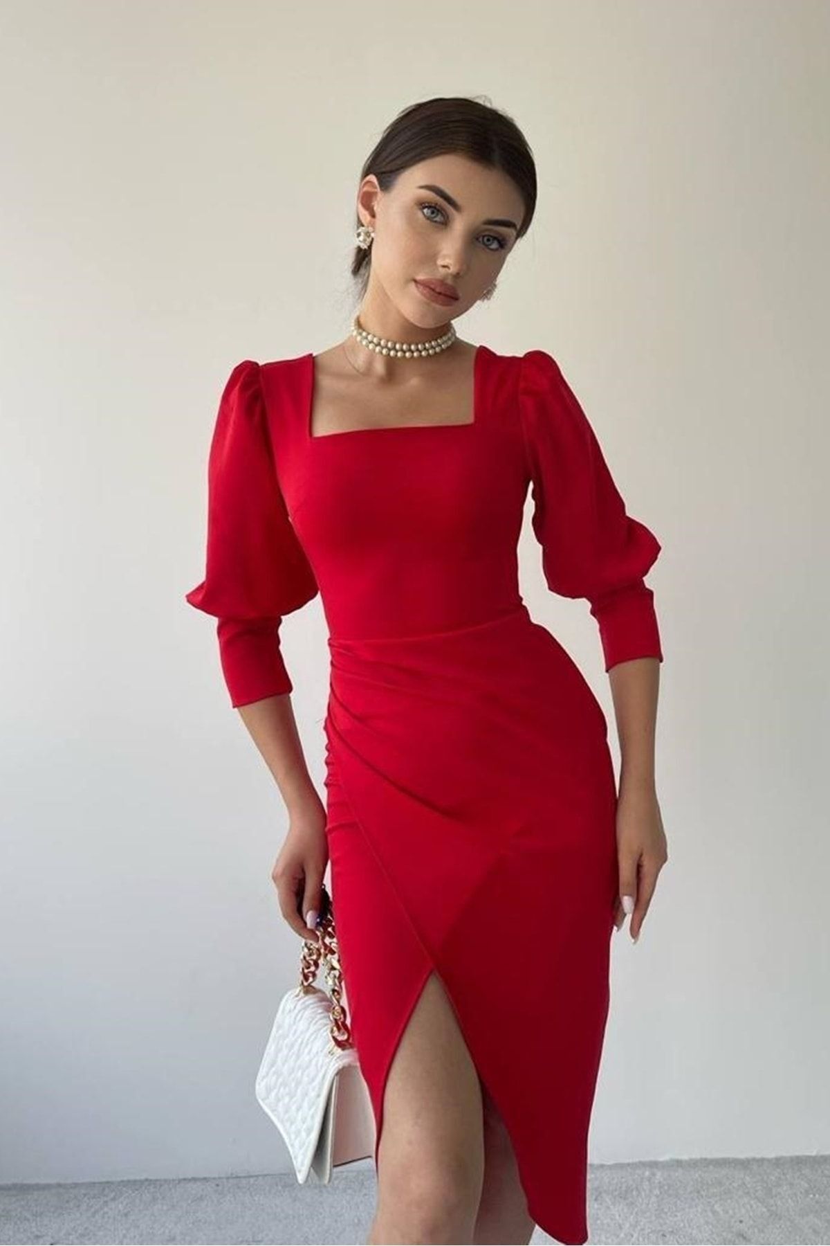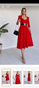 Krep Kumaş Kemerli Kısa Kollu Pencere Yaka Midi Boy Kırmızı Elbise 075 Krep Kumaş Kemerli Kısa Kollu Pencere Yaka Midi Boy Kırmızı Elbise 075 4S1B-DKS-075 40