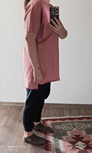 Kadın V Yaka Yırtmaçlı Oversize Basic Tişört Kadın V Yaka Yırtmaçlı Oversize Basic Tişört P5001K Standart