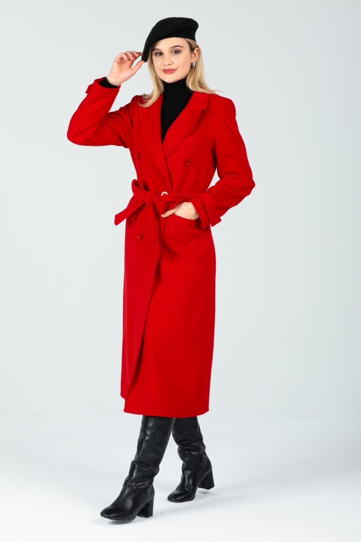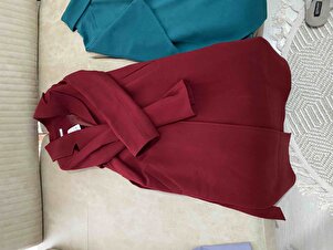 Kadın Bordo Erkek Yaka Uzun Kuşaklı Kaban 70426. Kadın Bordo Erkek Yaka Uzun Kuşaklı Kaban 70426. 70426-p 2