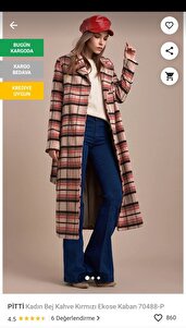 Kadın Bej Kahve Kırmızı Ekose Kaban 70488-P Kadın Bej Kahve Kırmızı Ekose Kaban 70488-P 2