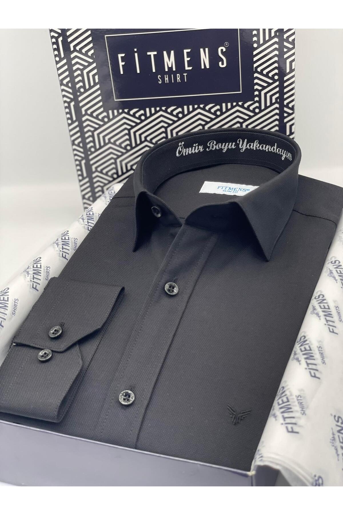 Slim Fit Uzun Kol Ömür Boyu Yakandayım Nakışlı Hediye Kutulu Erkek Gömlek FS-001376 - Siyah Slim Fit Uzun Kol Ömür Boyu Yakandayım Nakışlı Hediye Kutulu Erkek Gömlek FS-001376 - Siyah 3XL