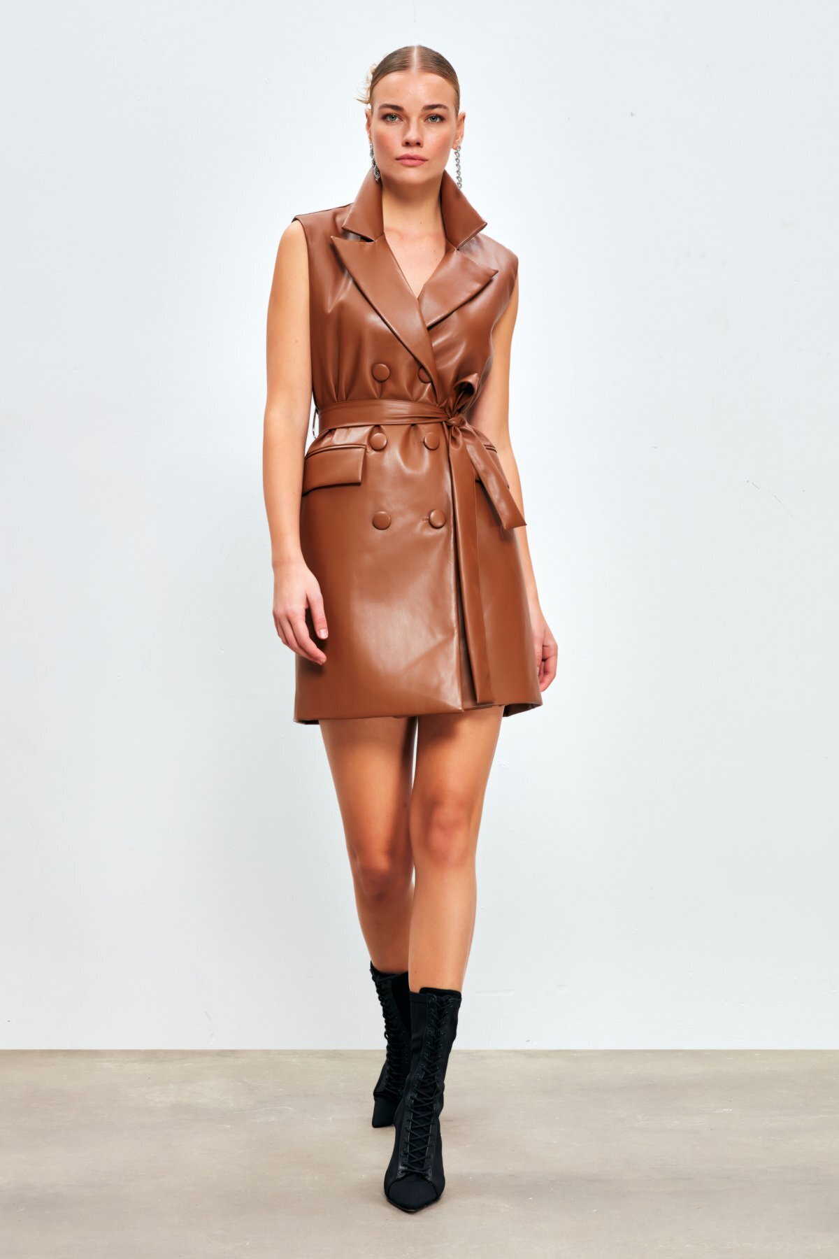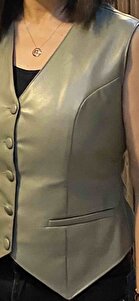 Düğme Detaylı Deri Yelek - Çağla Yeşili Düğme Detaylı Deri Yelek - Çağla Yeşili STN139KYE2060 42