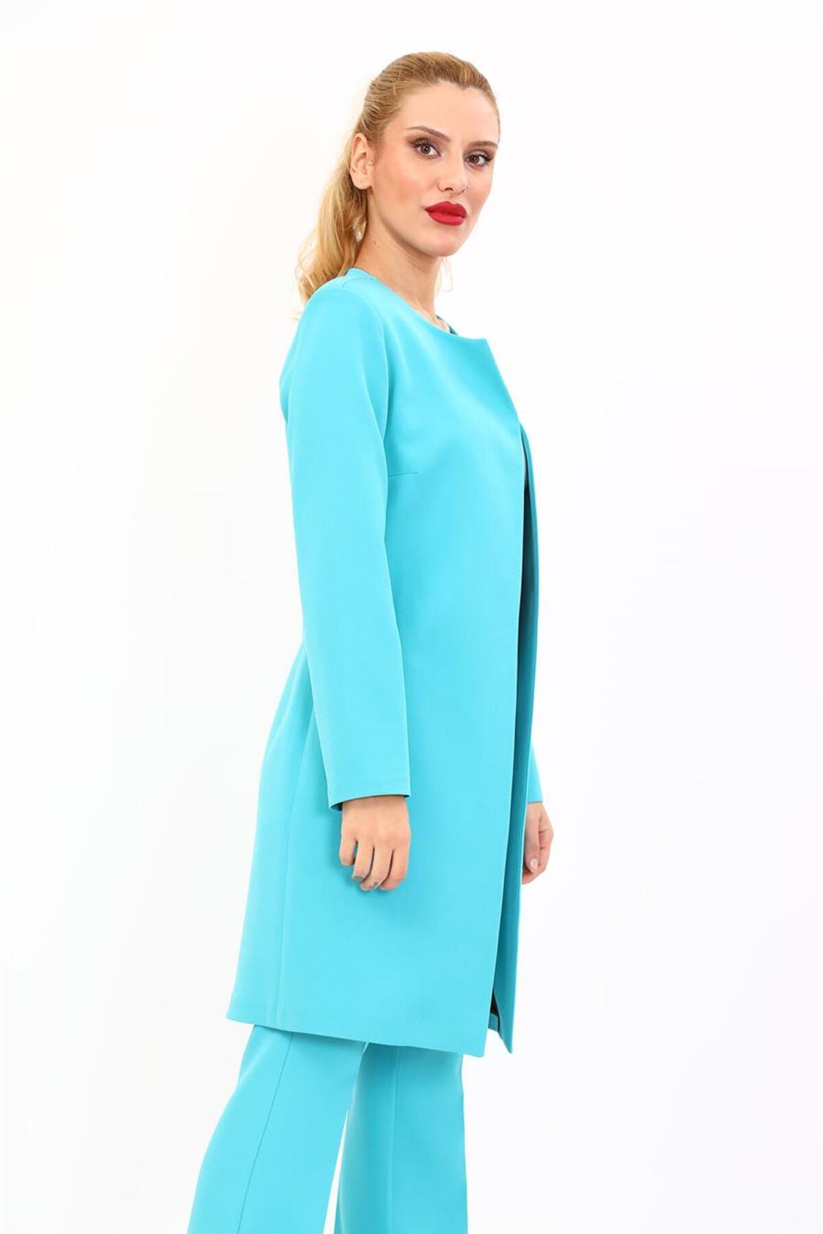 Sıfır Yaka Düz Uzun Ceket-Turkuaz Sıfır Yaka Düz Uzun Ceket-Turkuaz 1005100 52
