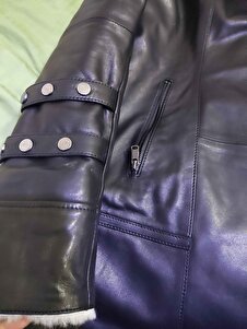 İçi Beyaz Kürk Kapüşonlu Kadın Deri Kaban İçi Beyaz Kürk Kapüşonlu Kadın Deri Kaban HKN01 2XL