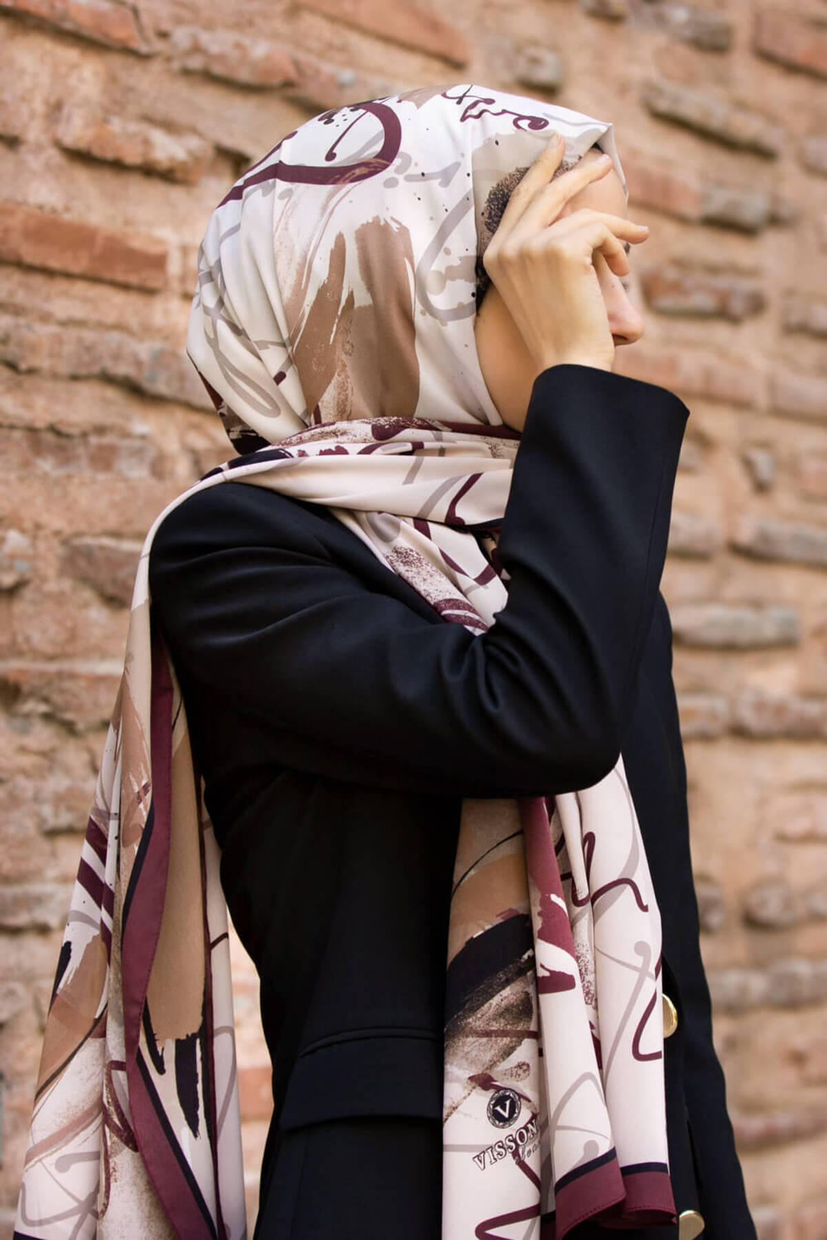 Kadın Lüks Medine Ipeği Şal Bordo Gri Kadın Lüks Medine Ipeği Şal Bordo Gri DGN50578 75 x 190