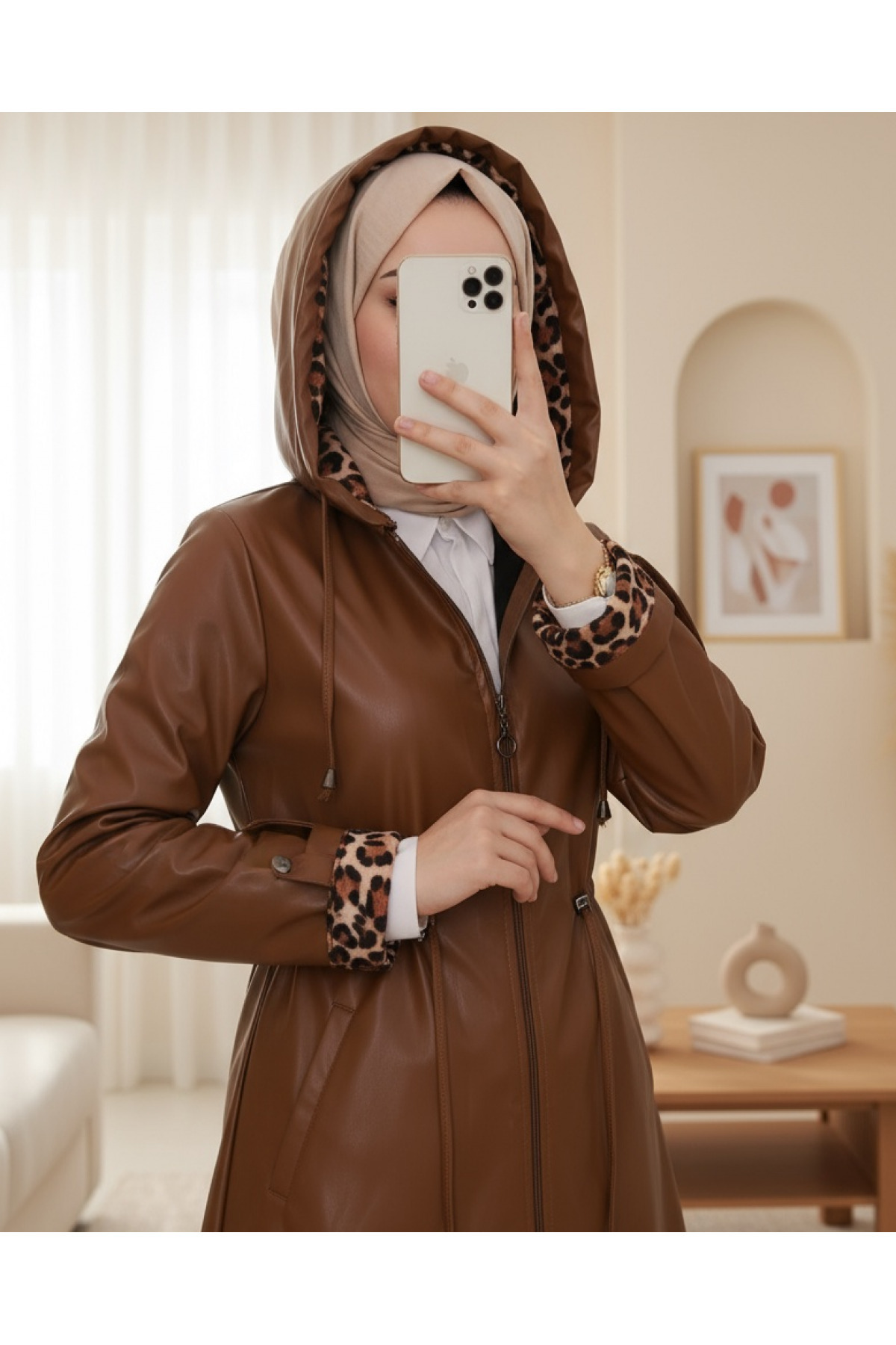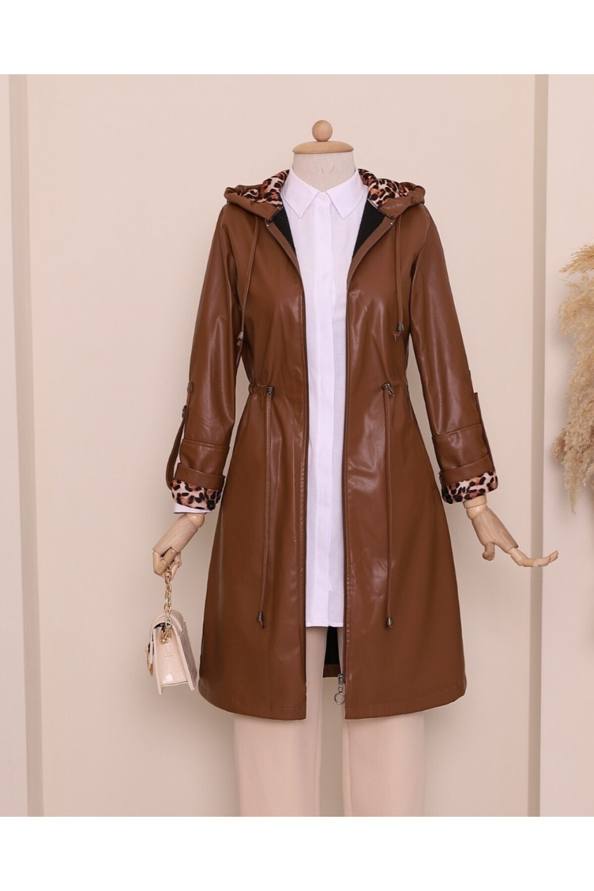 Kolu Katlamalı Beli Bağcıklı Kapşonlu Deri Kap -Taba Kolu Katlamalı Beli Bağcıklı Kapşonlu Deri Kap -Taba TY197-2068 48