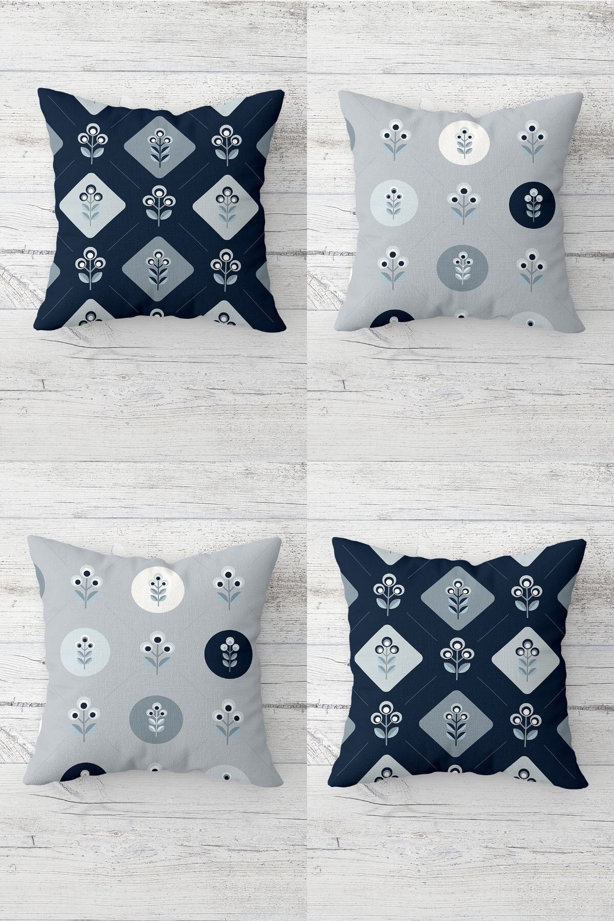 Çift Tarafı Baskılı Navy Vintage Desenli 4'lü Kombin Süet Kırlent Kılıfı Çift Tarafı Baskılı Navy Vintage Desenli 4'lü Kombin Süet Kırlent Kılıfı PLG-4LÜ 43 x 43